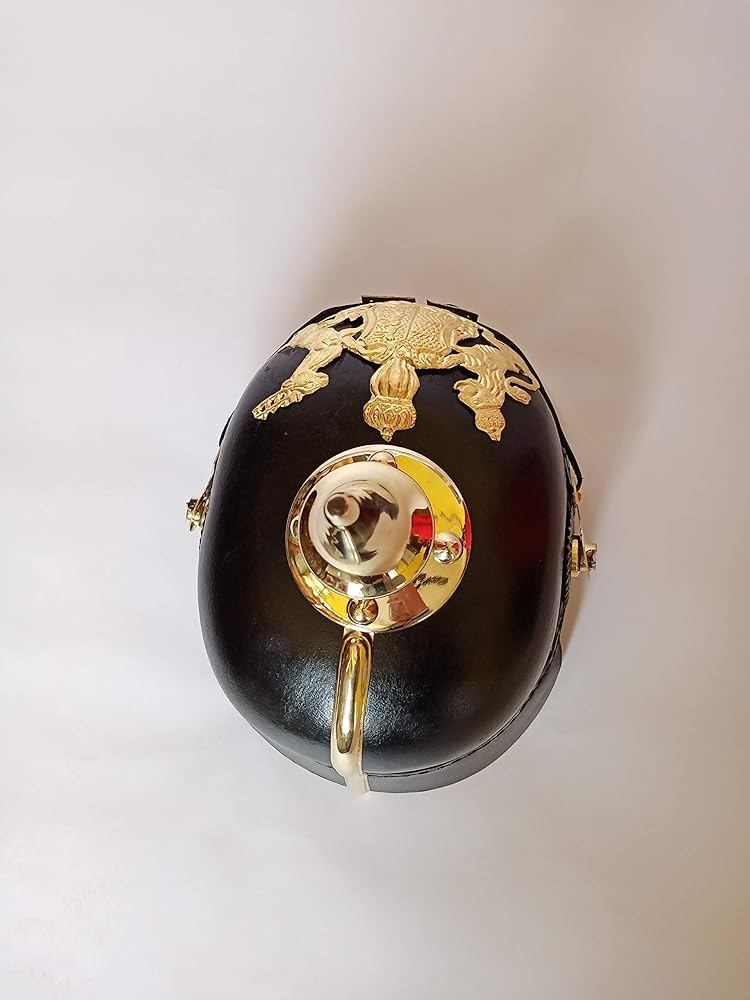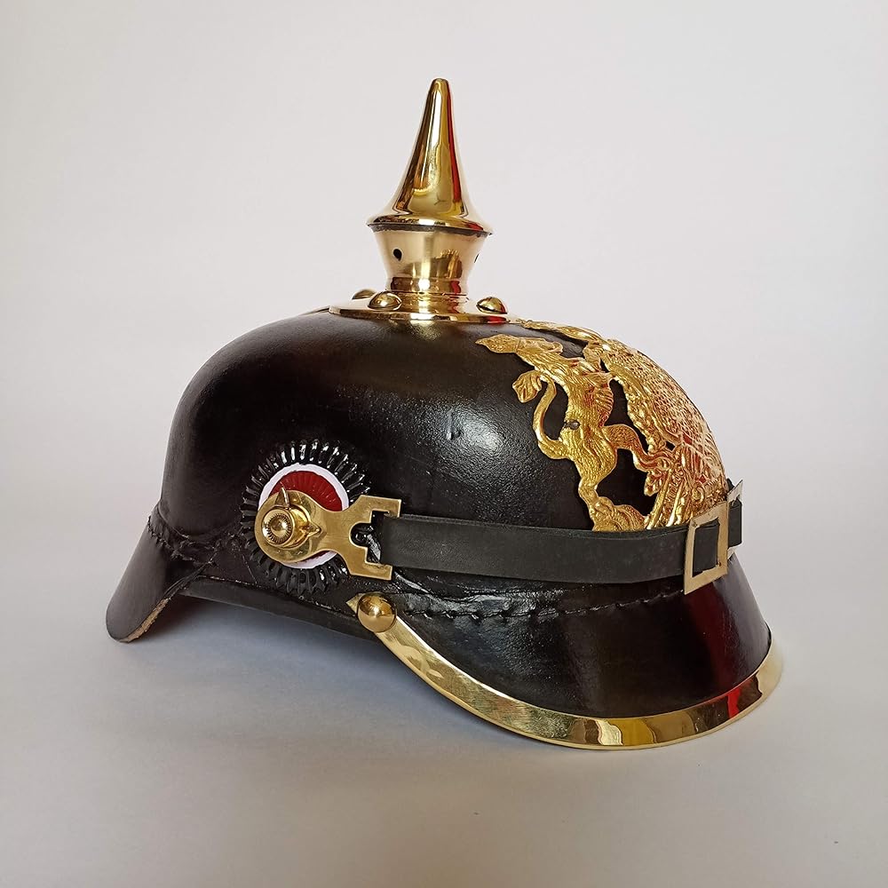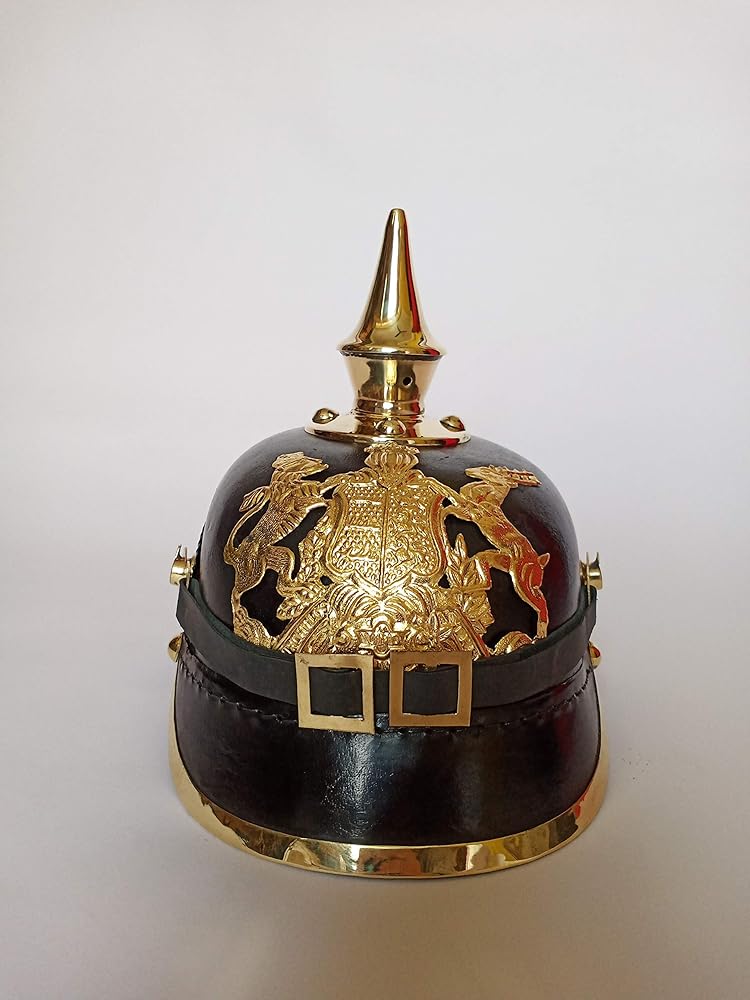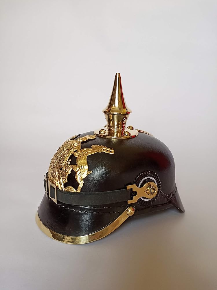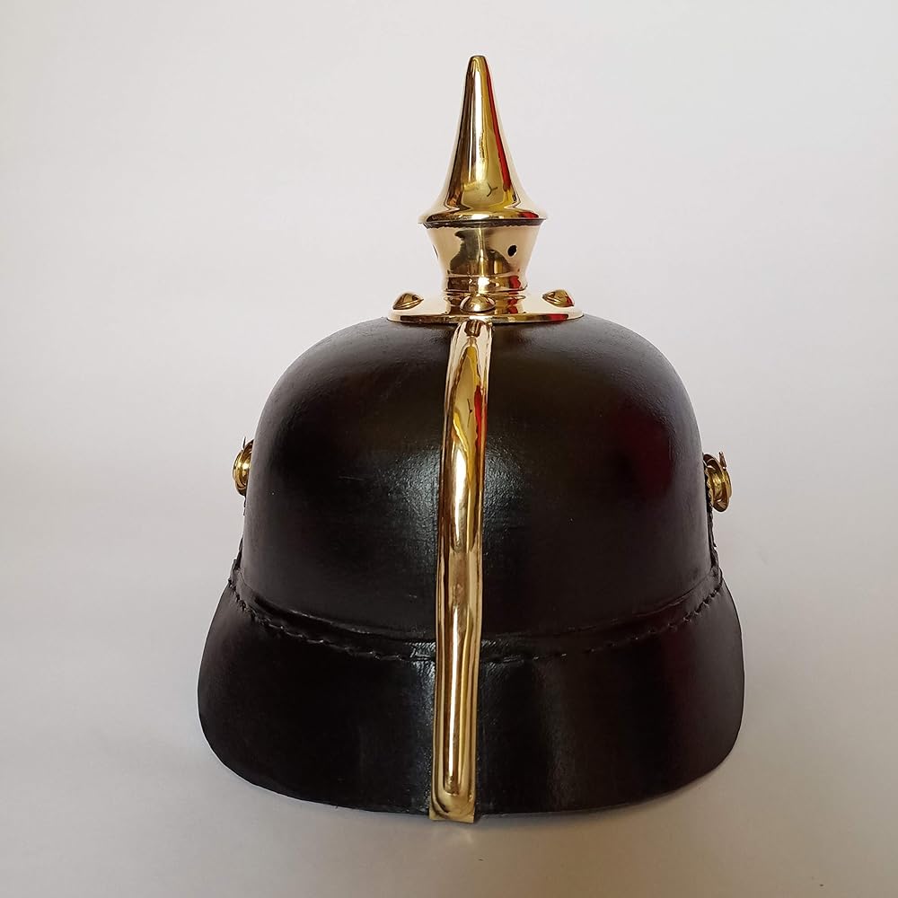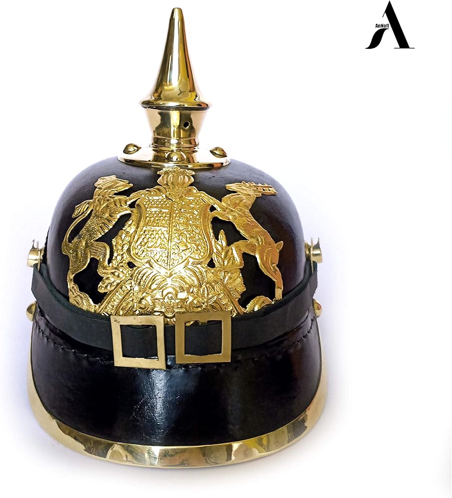 • ✔️ خوذة PICKELHAUBE SPIKE الألمانية من AnNafi: - خوذة بروسية ألمانية عالية الجودة مصنوعة من جلد حقيقي عالي الجودة تُعرف أيضًا باسم خوذة Pickelhaube الإمبراطورية الألمانية. زخارف نحاسية صلبة مصنوعة يدويًا بنسبة 100% وجميع التركيبات مصنوعة من النحاس
