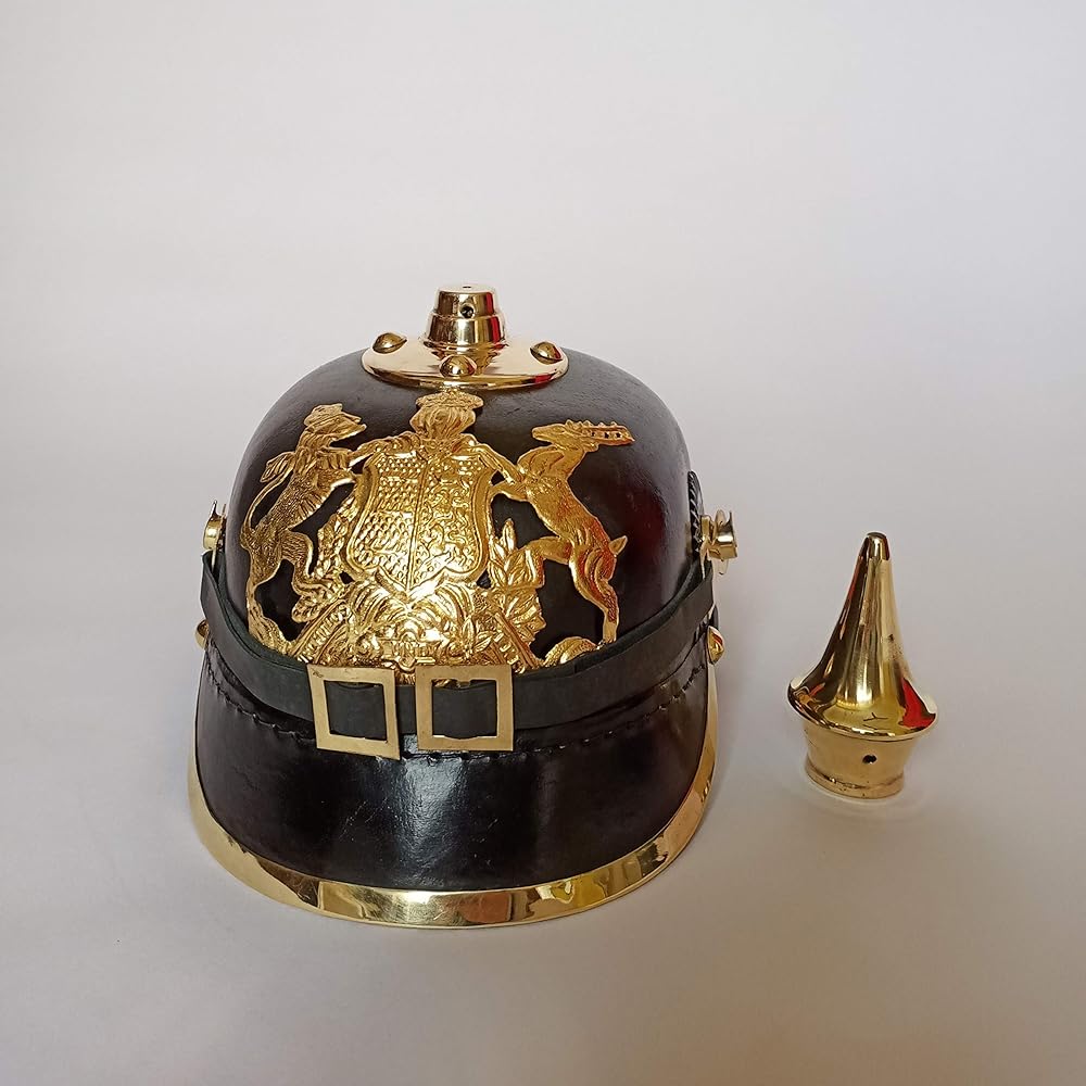 AnNafi® الحرب العالمية الأولى والثانية الألمانية PICKELHAUBE هيسن سبايك خوذة | خوذة جلدية بروسية بافارية | زي ضابط عسكري نحاسي | أزياء تنكرية لحفلات إعادة تمثيل LARP