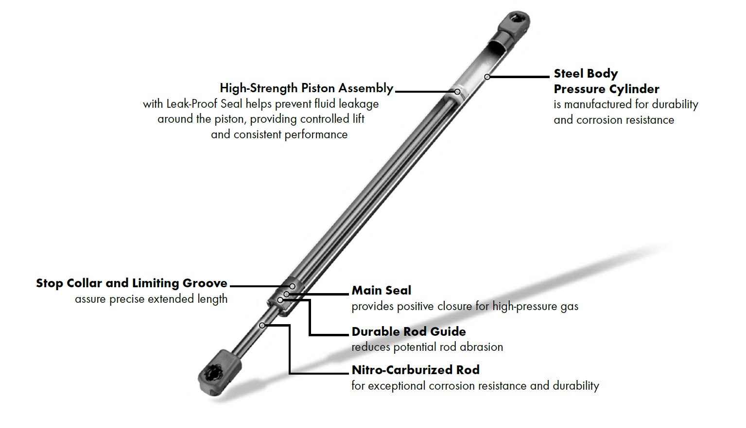 - بديل دقيق، مصمم خصيصًا لتطبيقك. يعمل قضيب المكبس المقاوم للصدأ على إطالة عمر المنتج.