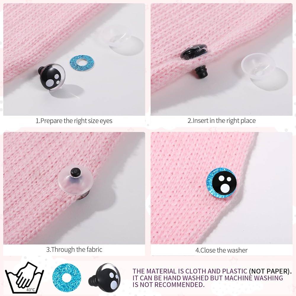 تصميم حدقة شديدة اللمعان على شكل قمر: هذه العيون البلاستيكية للكروشيه مصنوعة من بلاستيك عالي الجودة، وتتميز عيون أمان الأميجورومي بتصميم فريد شديد اللمعان على السطح؛ يعتمد التلميذ على تصميم هلالي غير تقليدي، وتعتمد الحشية الخلفية على تصميم على شكل وعاء، مما يسمح لعيون الأمان بالغرق في الدمية مثل الثقالة. هذه التصميمات تجعل العيون تتألق بريق ساحر تحت الضوء، مما يجعل عيون الأمان لدميتك أو ديكورك أكثر ثلاثية الأبعاد وديناميكية. لقد تم صقل كل التفاصيل بعناية لجعل إبداعك أكثر حيوية