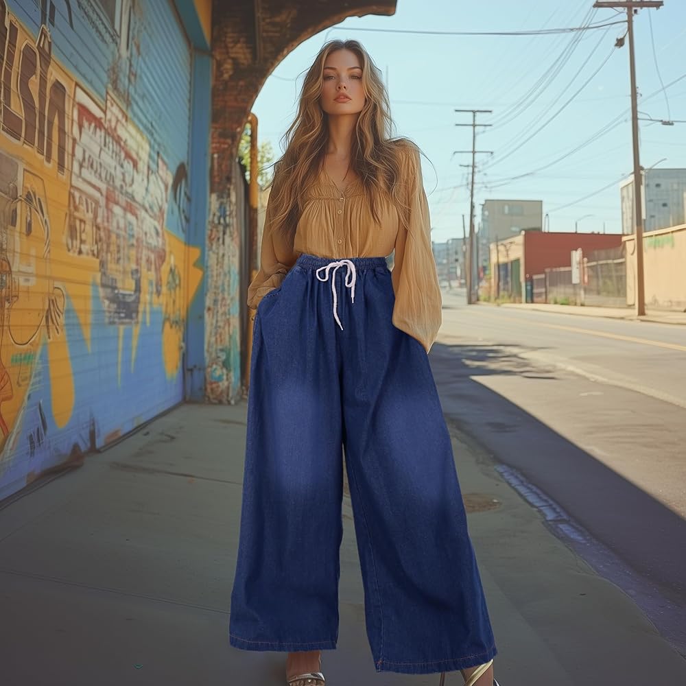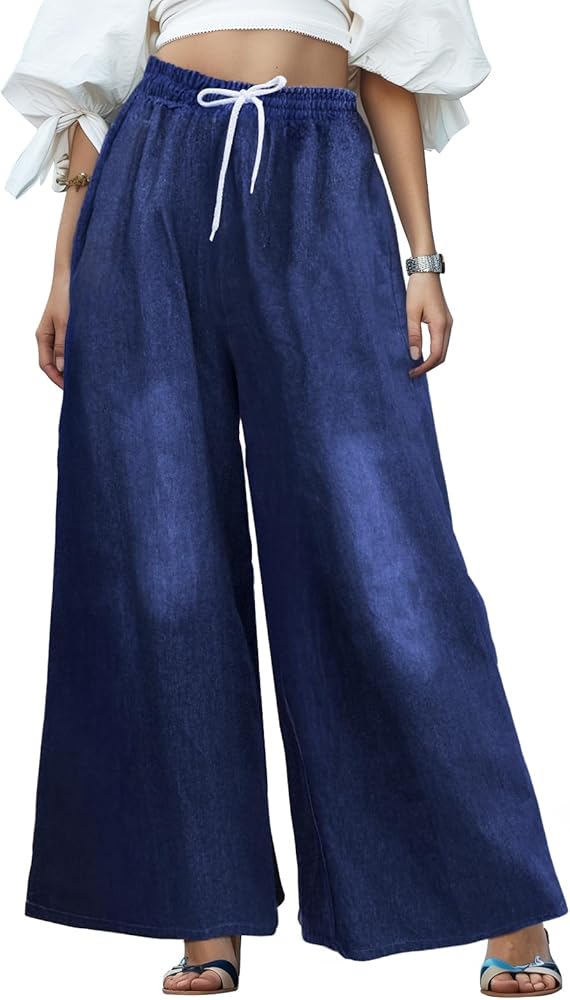 • تصميم أنيق - خصر كاجوال فضفاض ومرن برباط، واسع، خصر عالي مناسب ورائع.