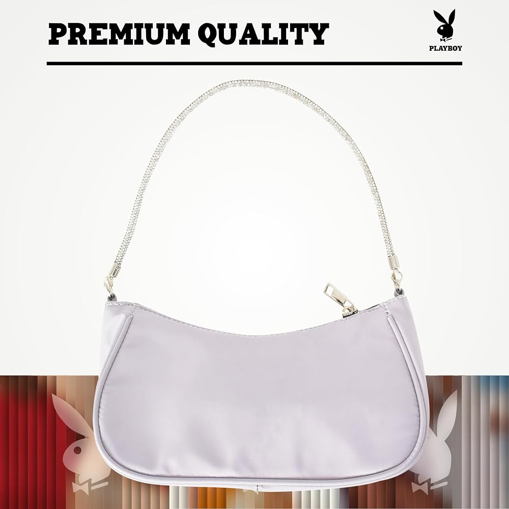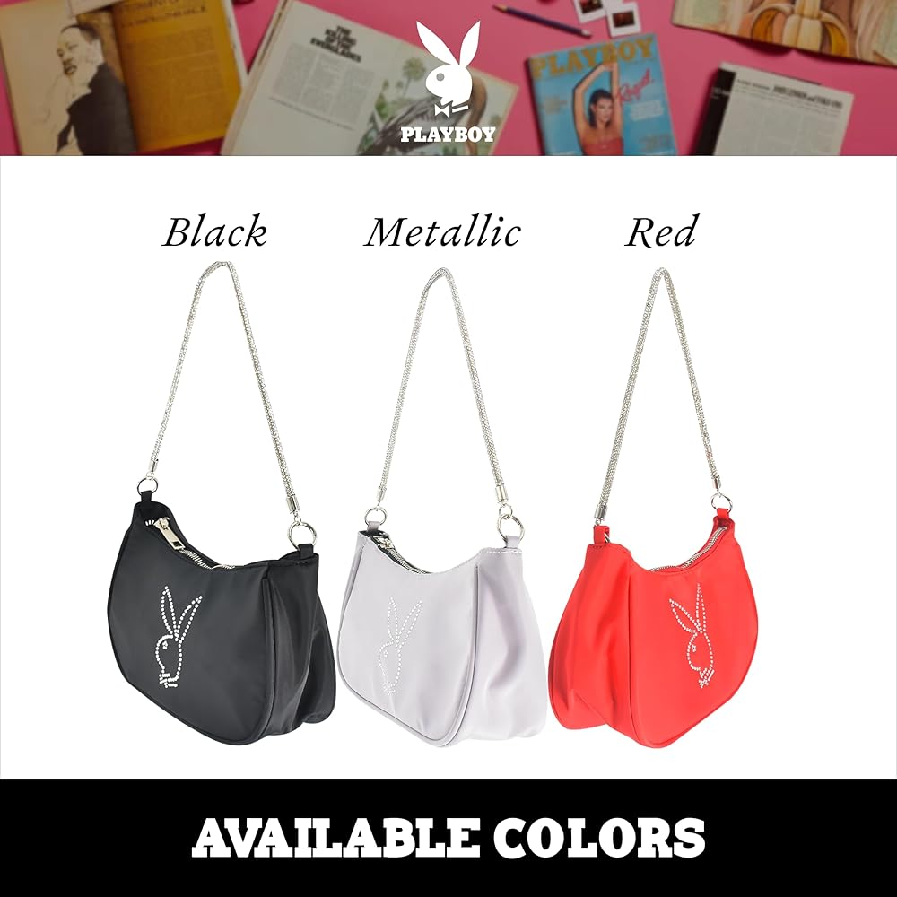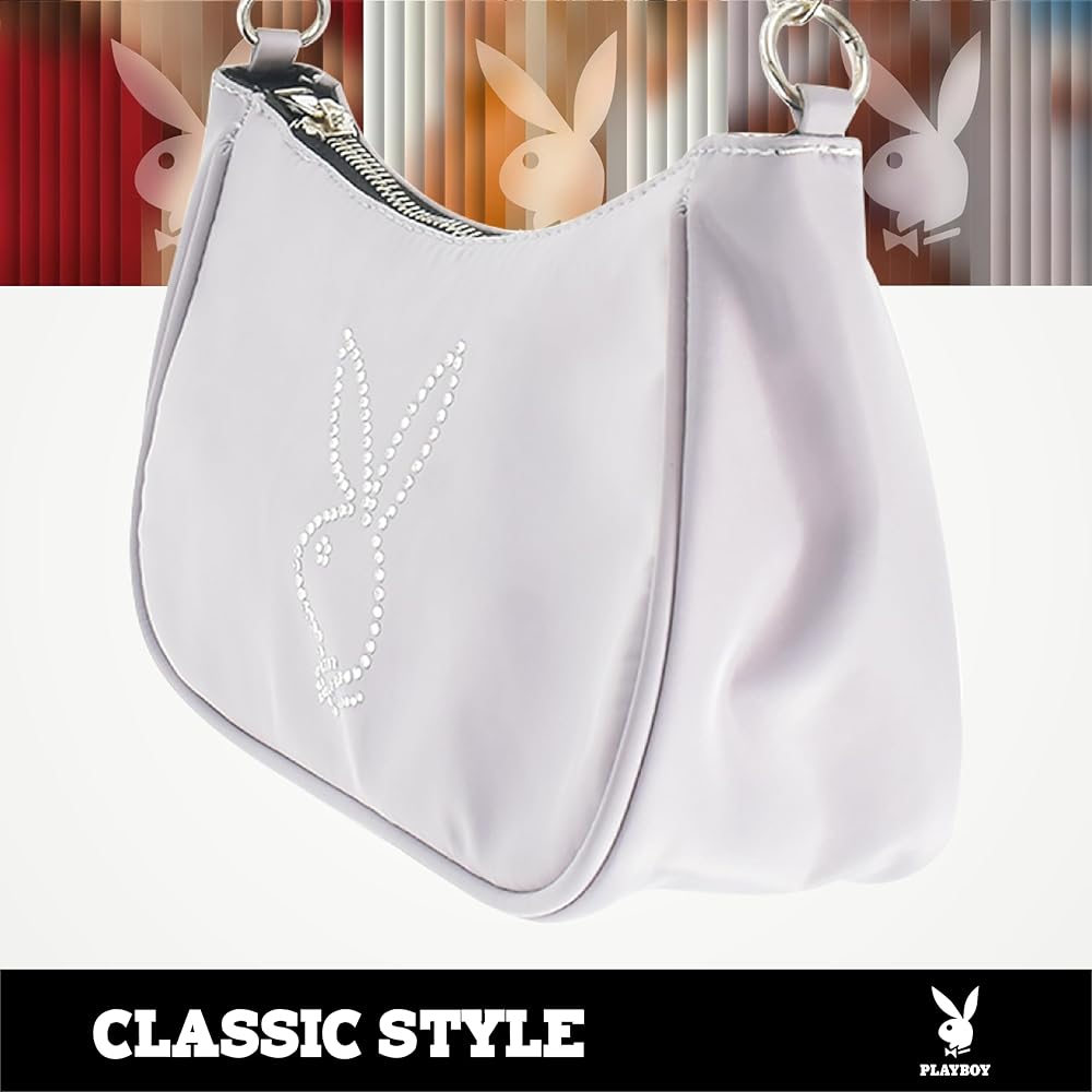 • محفظة بلاي بوي: تتميز حقيبة الكتف النسائية الأنيقة والعصرية المصنوعة من النايلون من بلاي بوي بتصميم أرنب بلاي بوي الأيقوني من حجر الراين وتتميز بحزام كتف أنيق من حجر الراين حتى تتمكن من الاحتفاظ بممتلكاتك الشخصية بسهولة في متناول اليد وإظهار الموضة الجميلة أينما ذهبت.