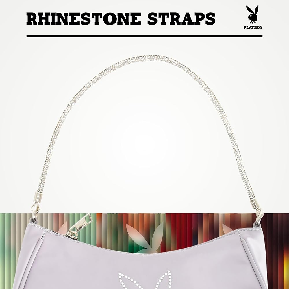 حقيبة كتف كونسيبت وان بلاي بوي، حقيبة يد نسائية مع حزام حمل من حجر الراين وشعار الأرنب