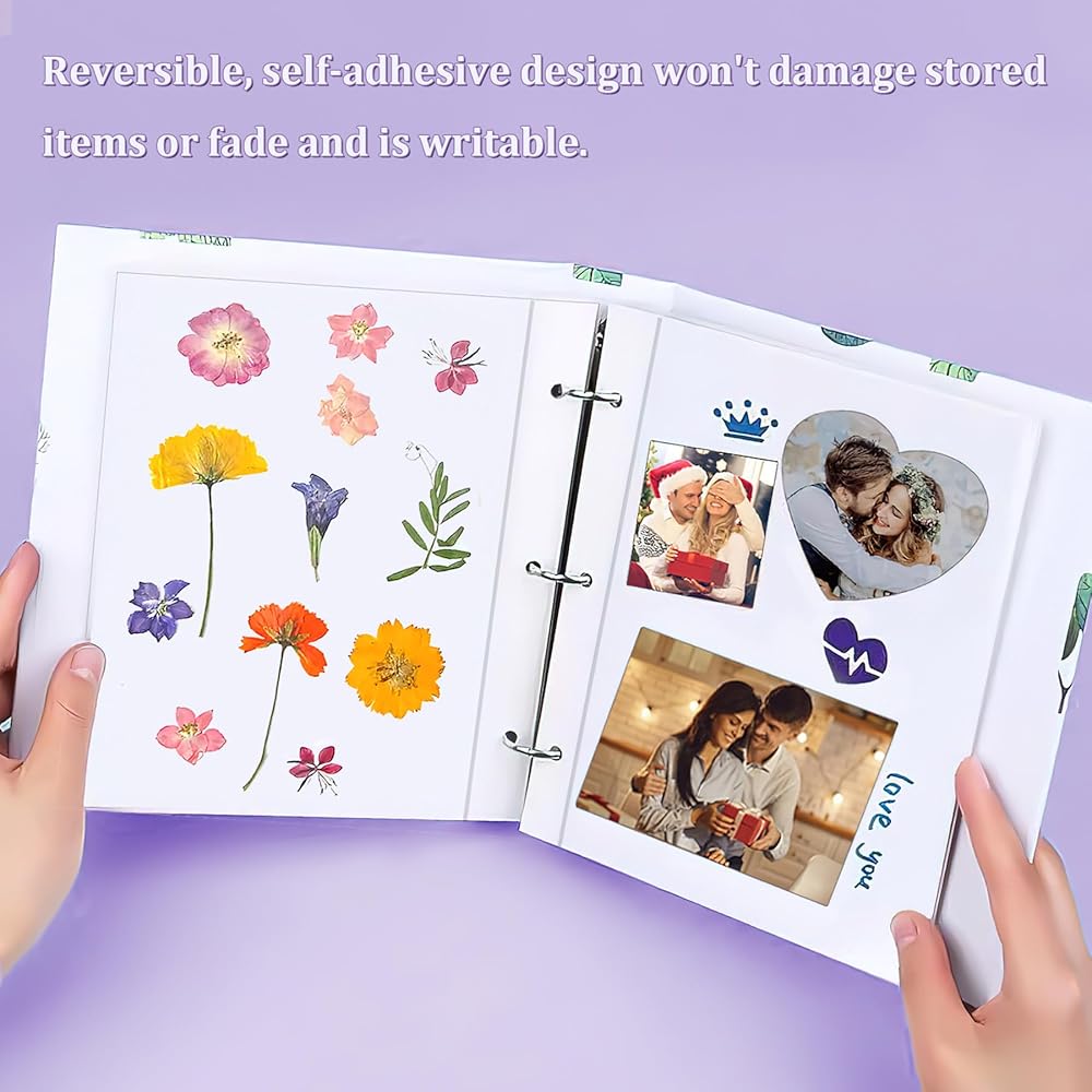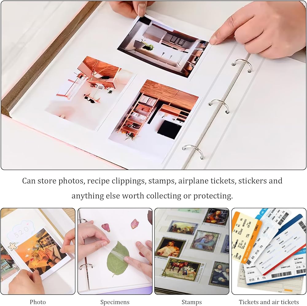 تخزين متعدد الأغراض: مثالي لتخزين الصور وقصاصات الوصفات والطوابع وتذاكر الطائرة والملصقات والمزيد. تمنع المادة الخالية من الأحماض البهتان أو الاصفرار بمرور الوقت، مما يضمن بقاء أغراضك الثمينة أصلية