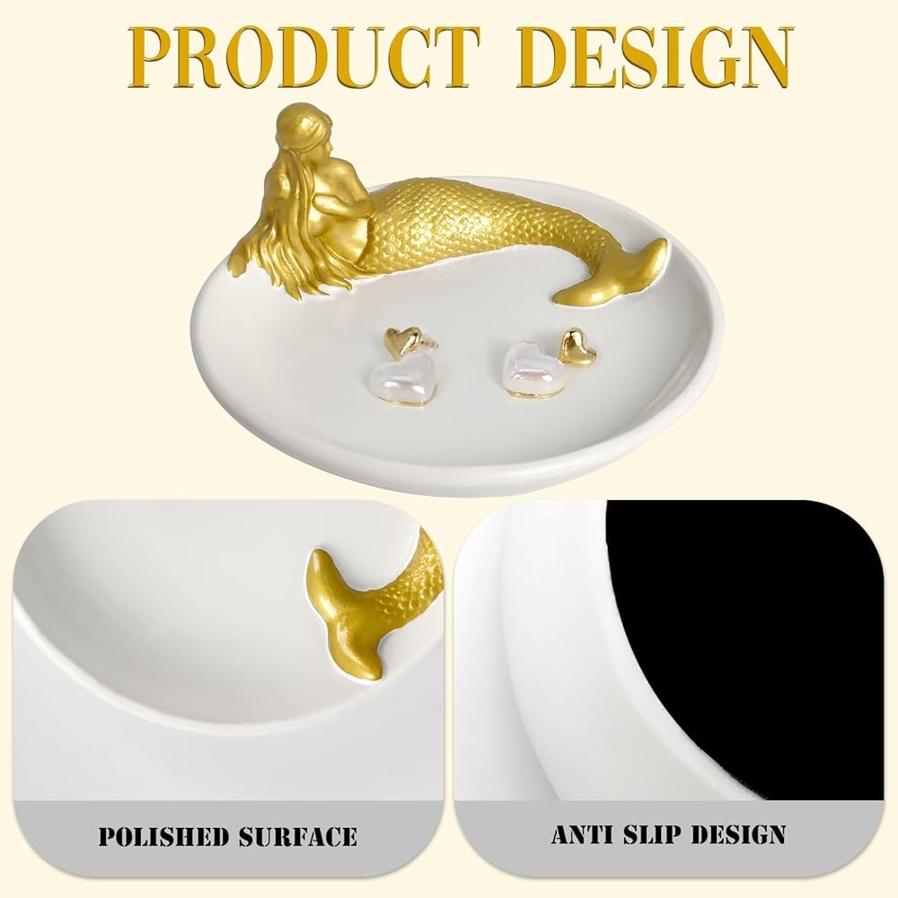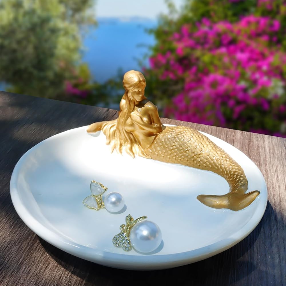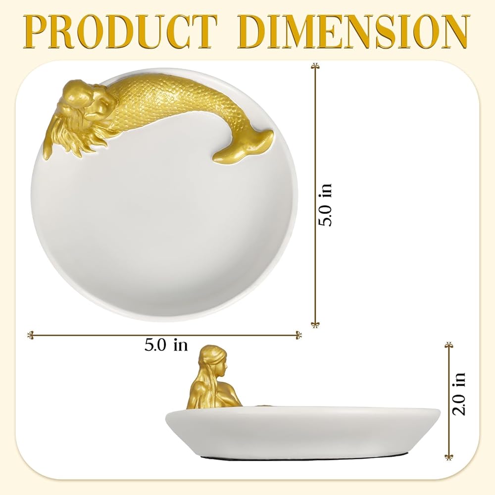 💗[الحجم]: صينية مجوهرات حورية البحر الرائعة مقاس 4.75 × 4.75 بوصة، مناسبة للوضع في مجموعة متنوعة من المساحات.