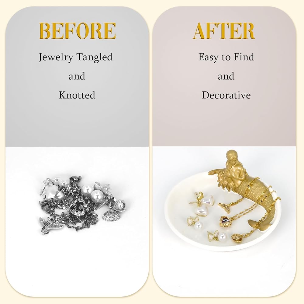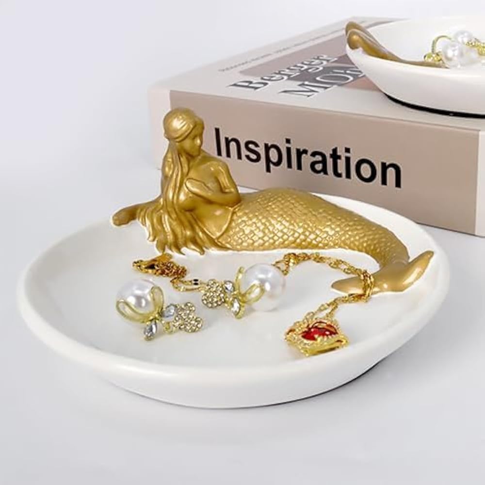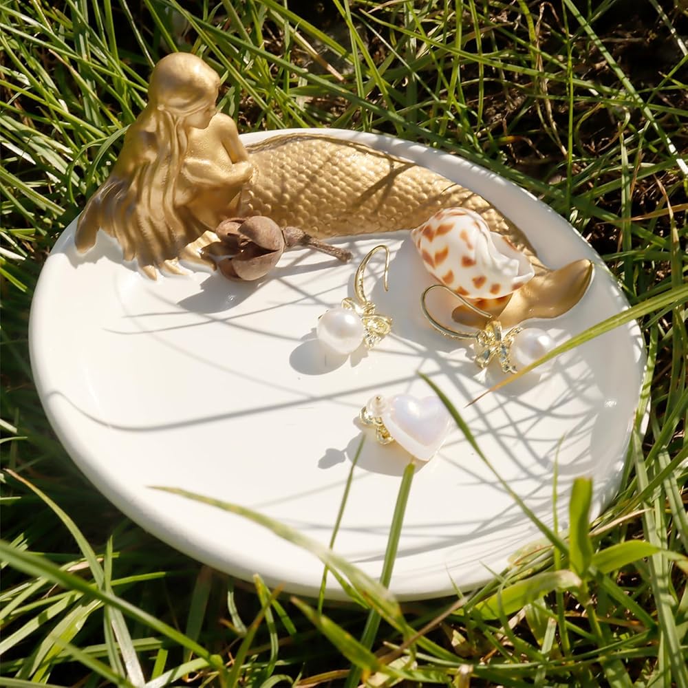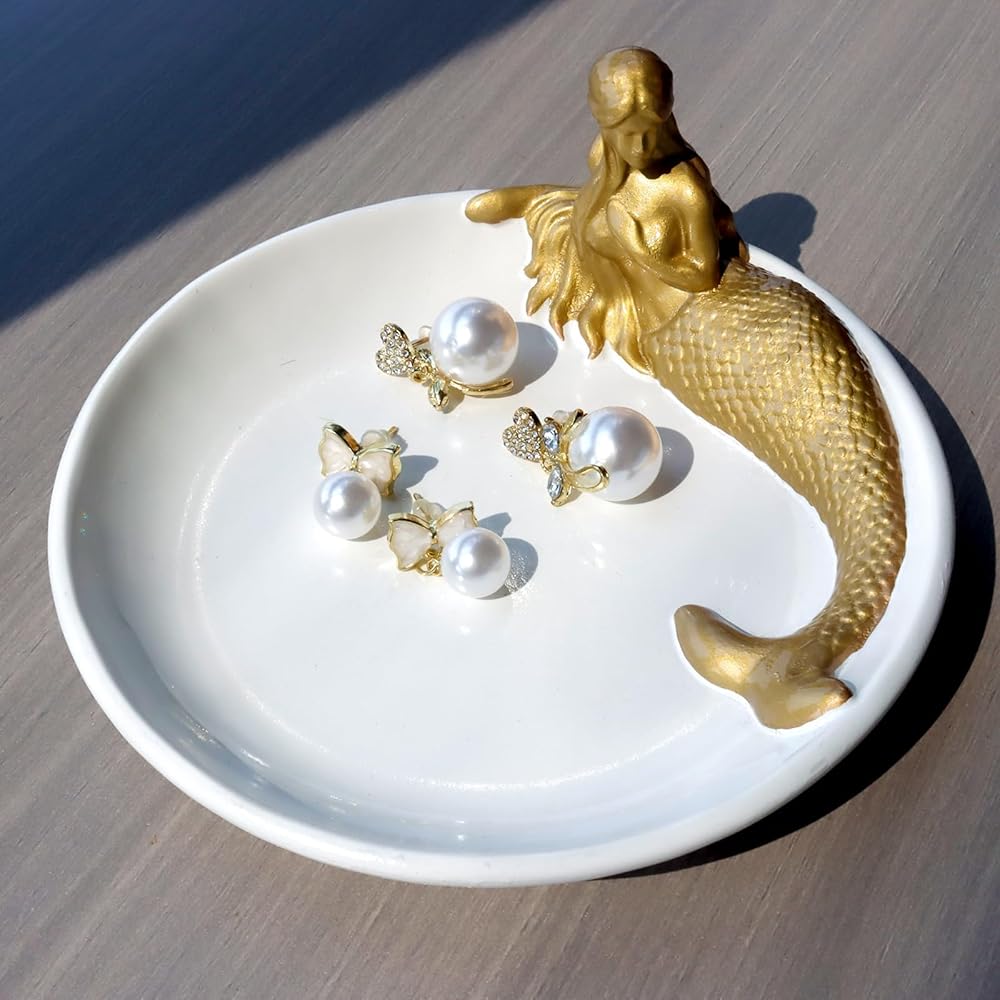 💗[الحجم]: صينية مجوهرات حورية البحر الرائعة مقاس 4.75 × 4.75 بوصة، مناسبة للوضع في مجموعة متنوعة من المساحات.
