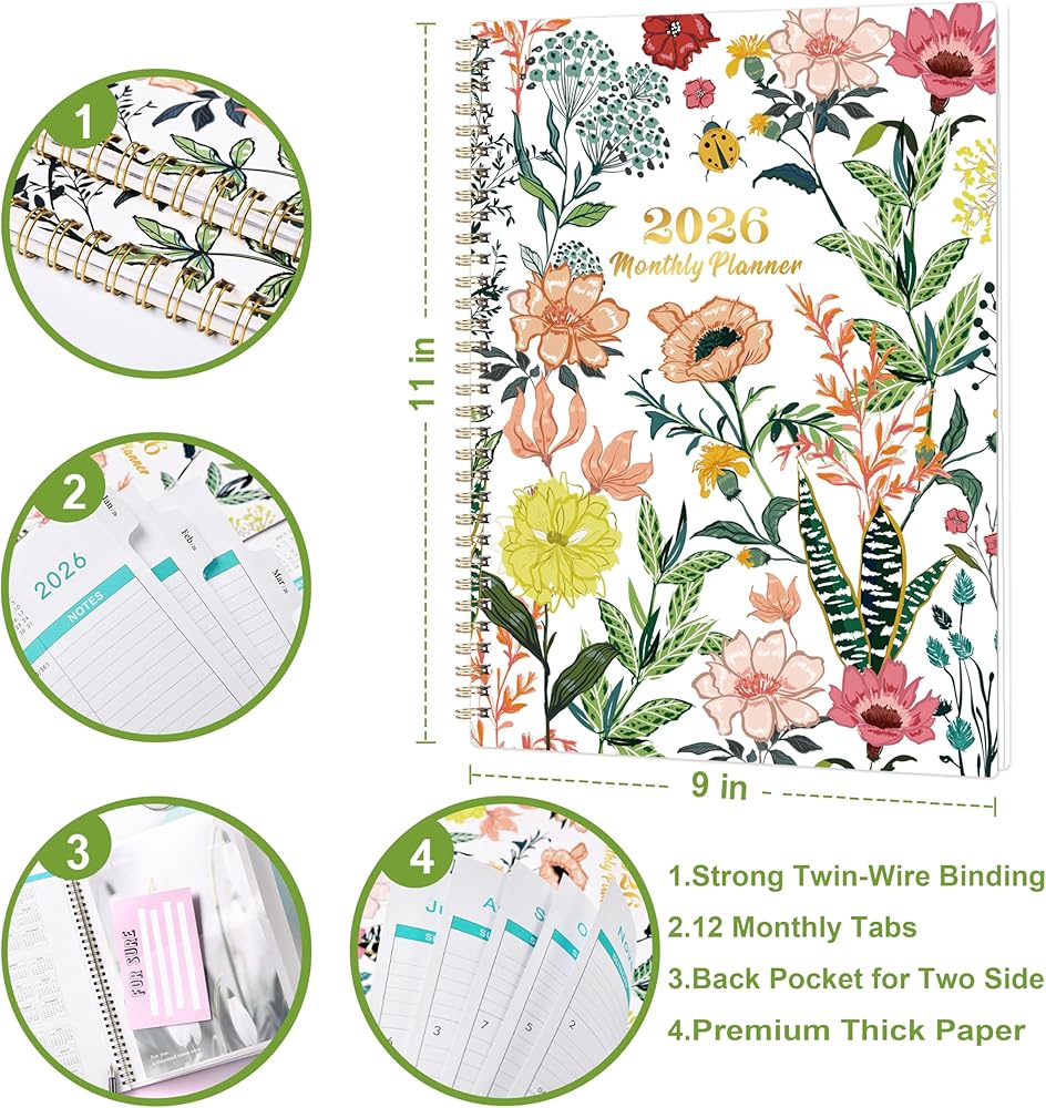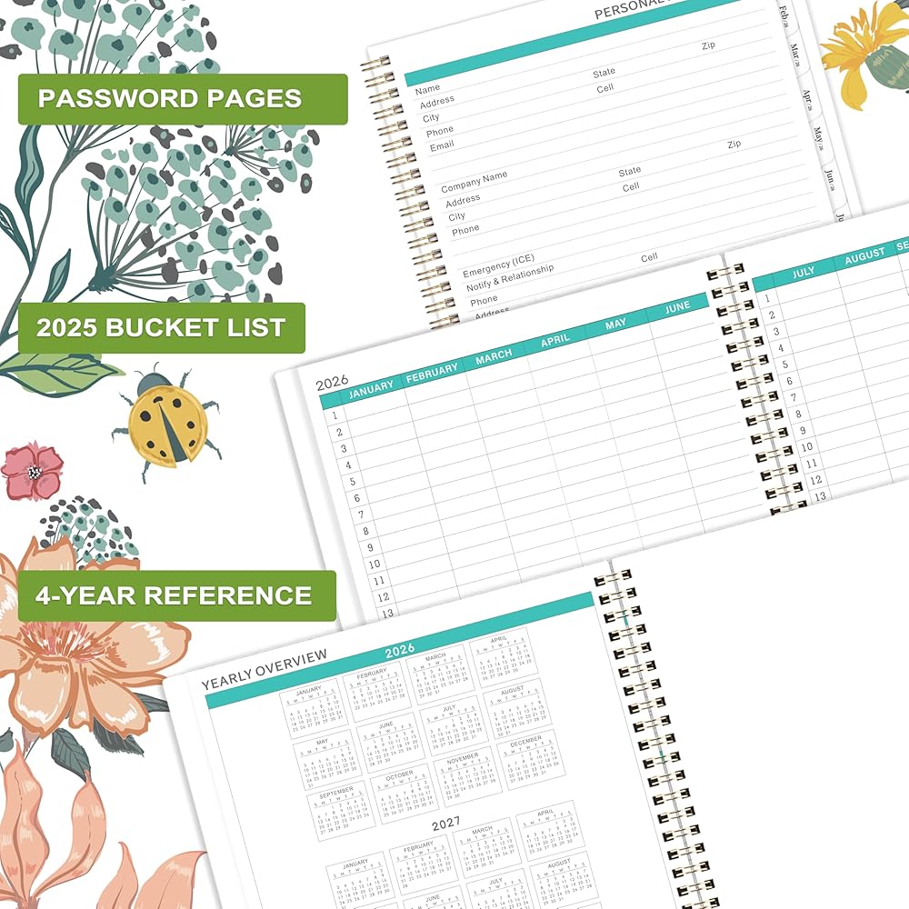 🌼 المزيد من الميزات - يمنح المعدن القوي والحلقة الحلزونية المسطحة مخطط التقويم لعام 2025 هذا مظهرًا حيويًا لإضاءة يومك. زوايا مستديرة تحمي يديك من الخدش. ورق سميك ممتاز لتجنب نزيف الحبر، مما يجعل حياتك/عملك/دراستك أكثر تنظيمًا.