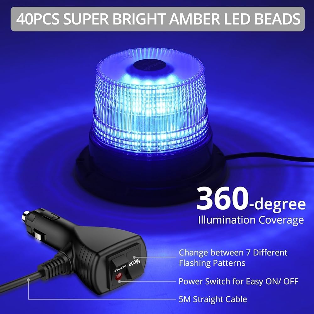 • 【سطوع عالي】يحتوي ضوء ستروب على 40 مصباح LED، ويوفر ضوء ستروب المنارة تغطية 360 درجة للإضاءة المثالية. يعد مصباح LED القوية هذا رائعًا لعمال الطوارئ والخدمة البريدية ومركبات البناء والأمن وما إلى ذلك.