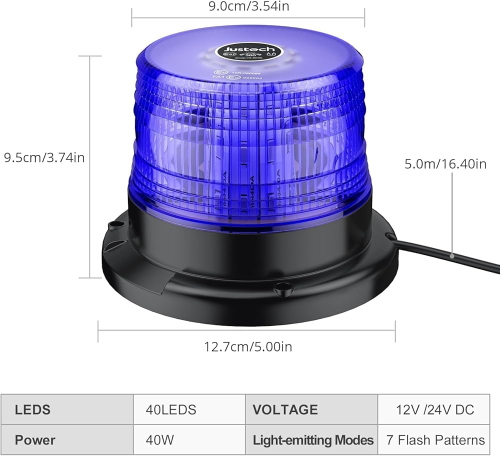 أضواء منارة وامضة من جوستيك، 40 مصباح LED للطوارئ، 12/24 فولت تحذير وامض مغناطيسي للسلامة، أضواء منارة ستروب قابلة لإعادة الشحن لشاحنة مركبة محراث الثلج، أزرق