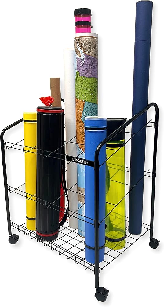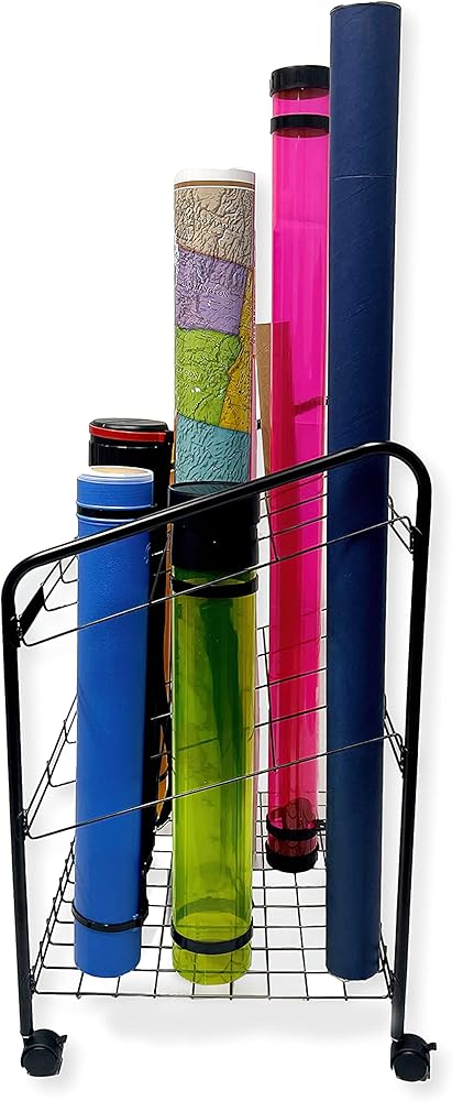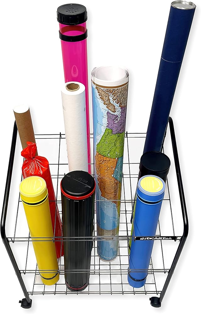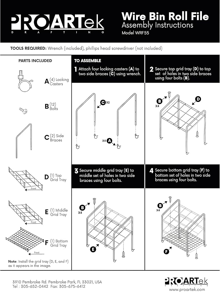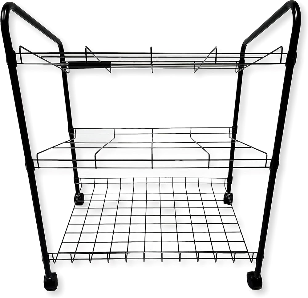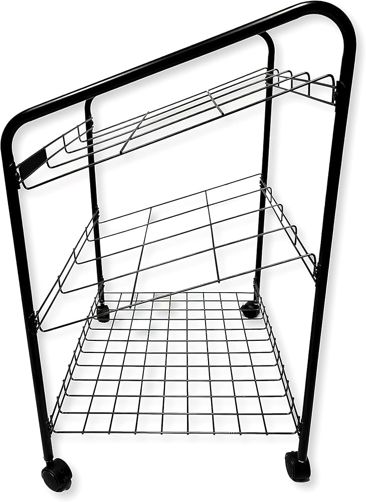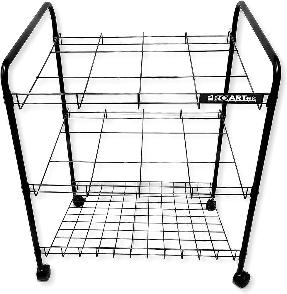 Proartek Drafting PK00003 Model WRF55 Wire Bin Roll File, 12 Slots, 5 x 5 Inches; Inclined Top and Middle Grid, Straight Bottom Grid; 4 Swivel Casters; Plastic Coated Heavy-gauge Steel Rods