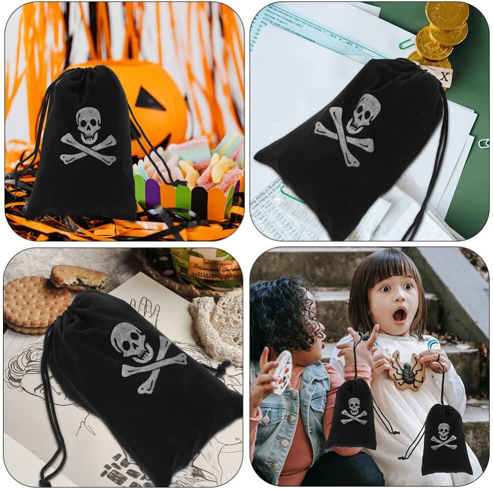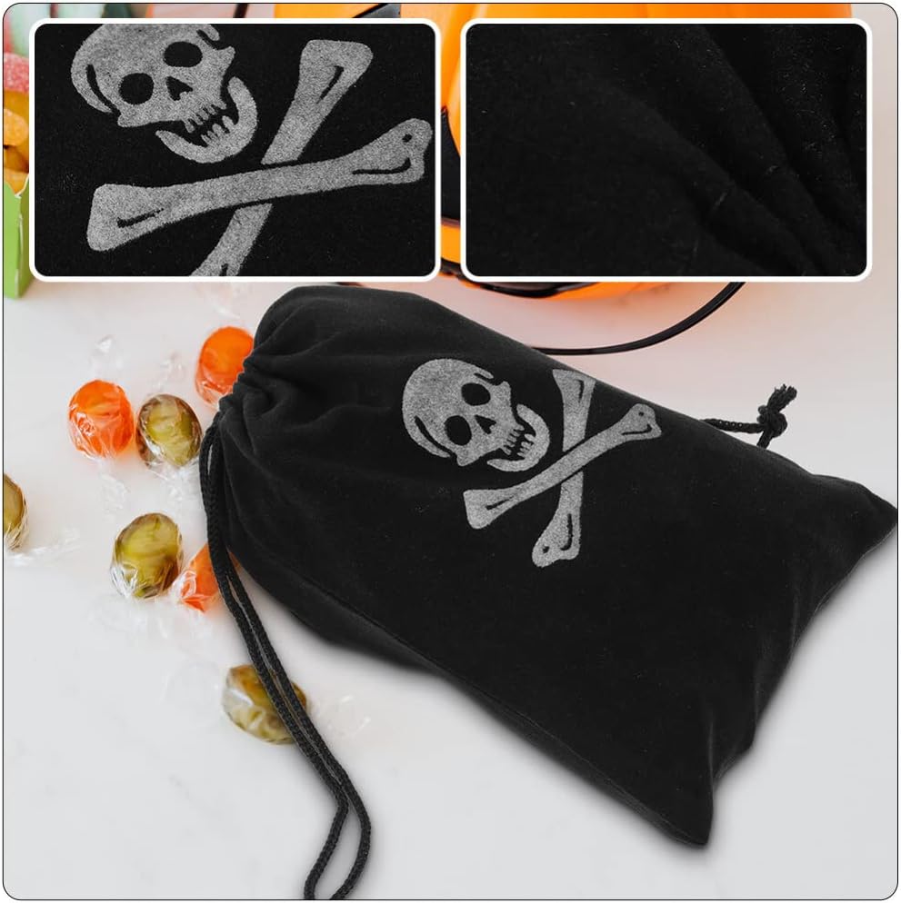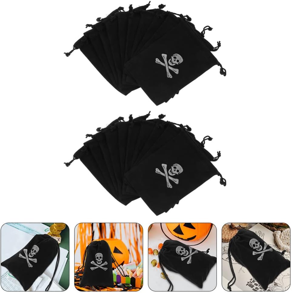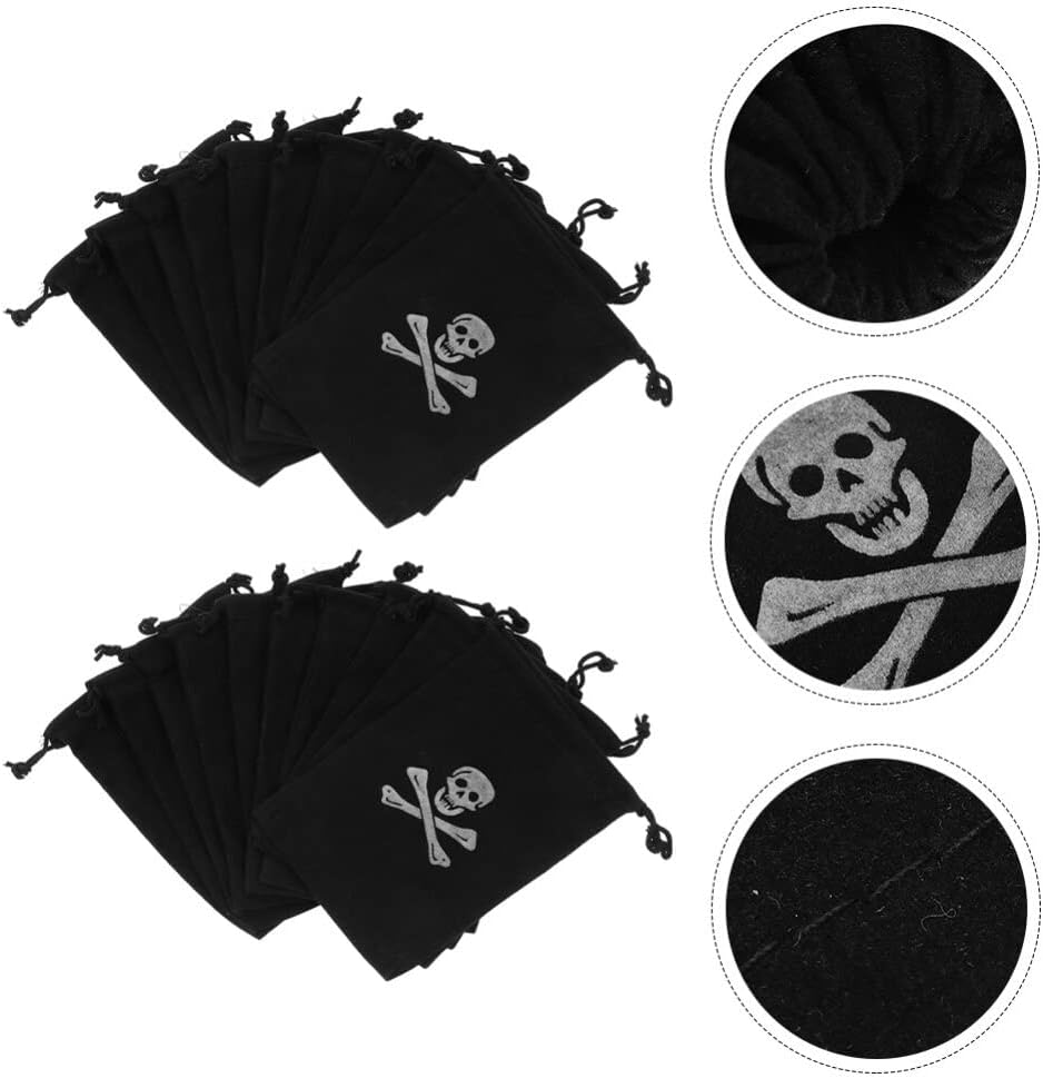 Ciieeo 20 قطعة حقيبة قرصان برباط أسود قرصان موضوع حقيبة نهب من البوليستر حقيبة قرصان الهالوين مع إغلاق برباط على شكل جمجمة حقيبة الهالوين