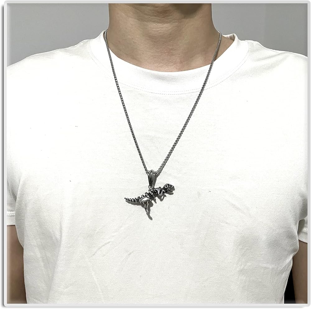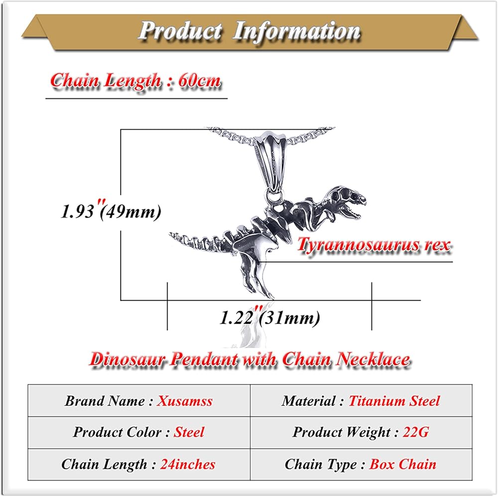 Xusamss الشرير الصخرة التيتانيوم الصلب هيكل عظمي ديناصور الديناصور ريكس قلادة قلادة، سلسلة 24 بوصة