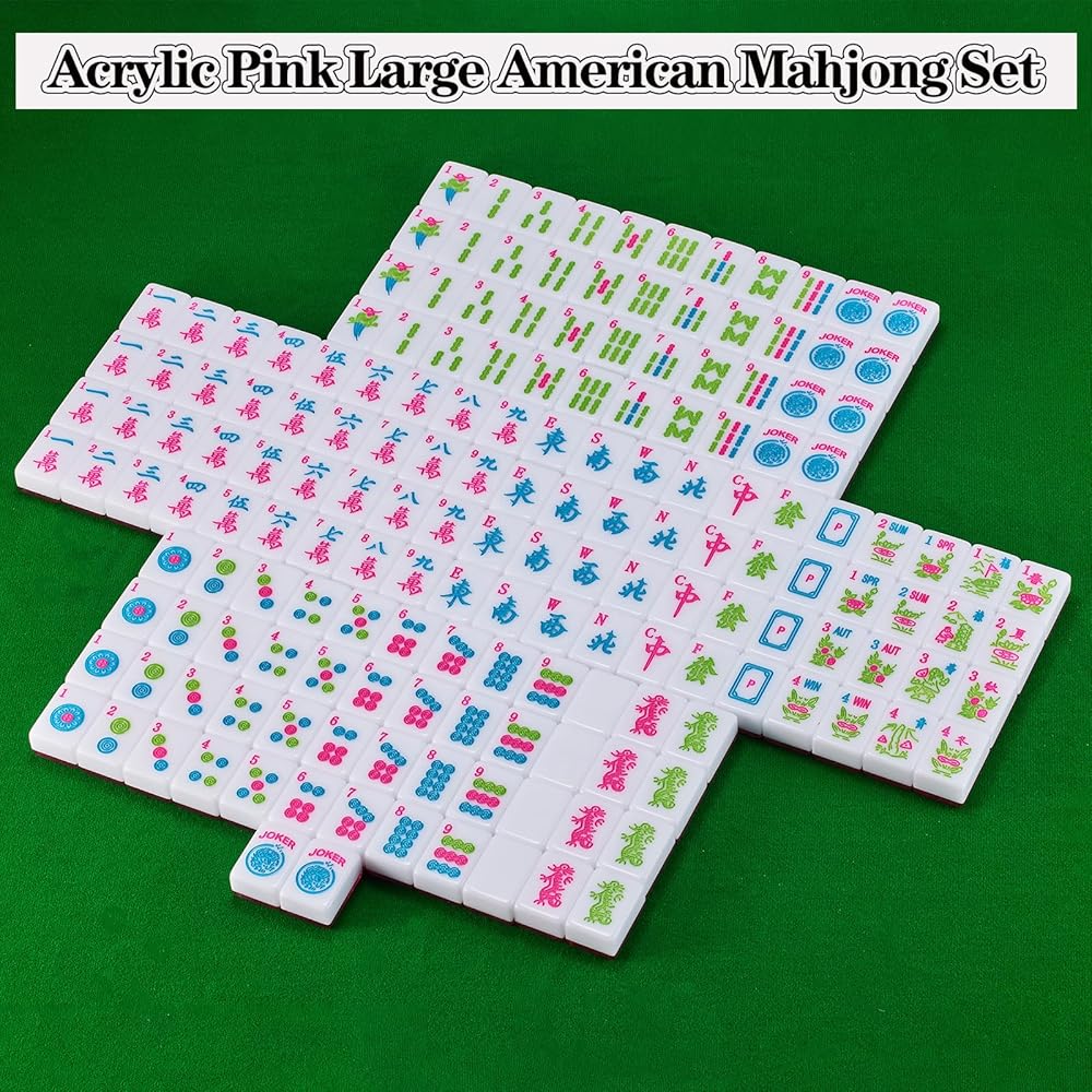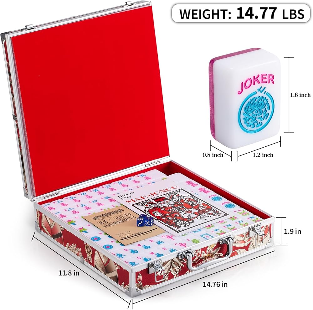 مجموعة Mahjong بلاط كبير جدًا، مقاس كل بلاطة 1.6 × 1.2 × 0.8 بوصة، حجم صندوق Mahjong: 14.76 × 11.8 × 1.9 بوصة، الوزن: 14.77 رطل
