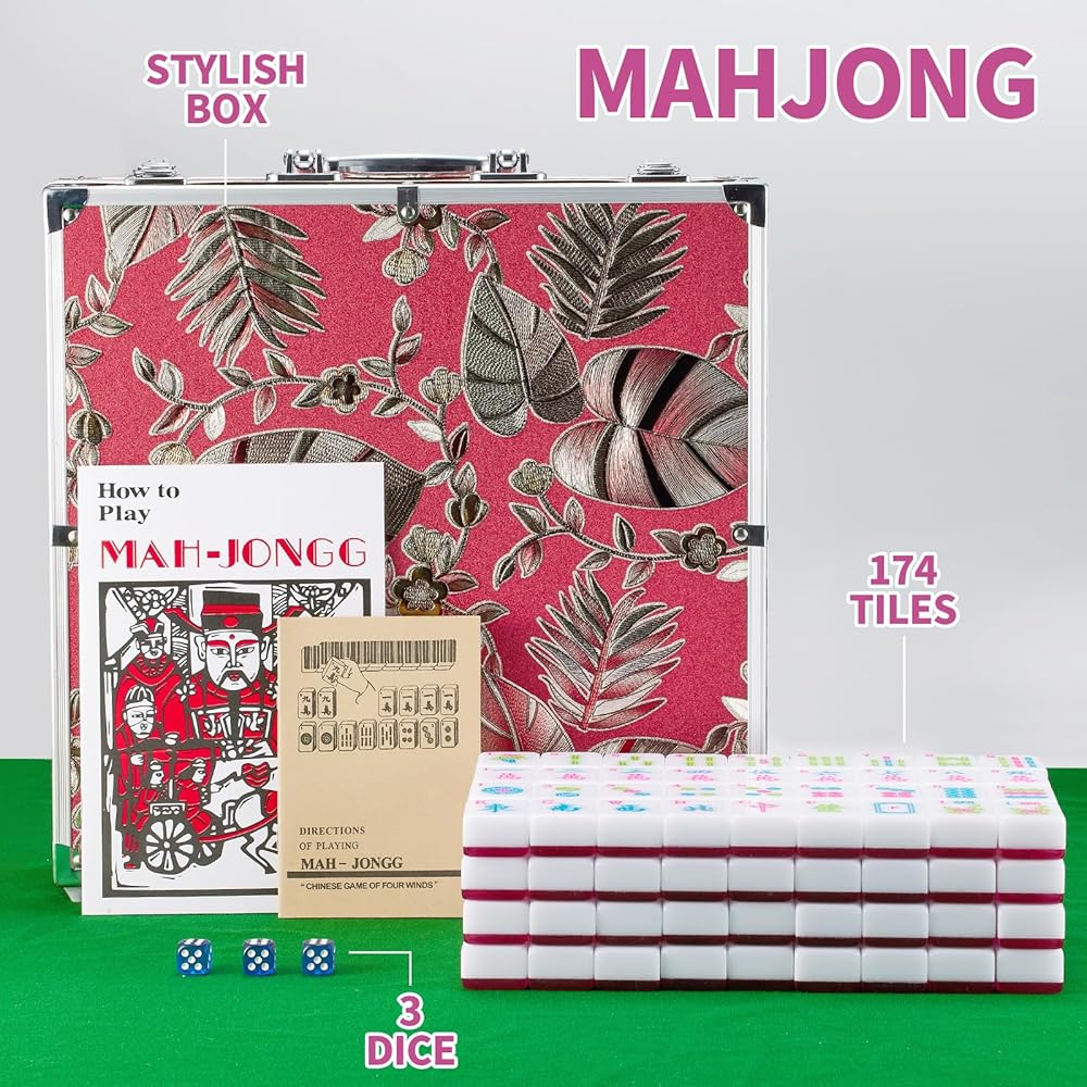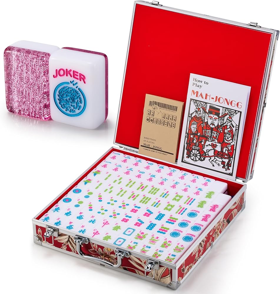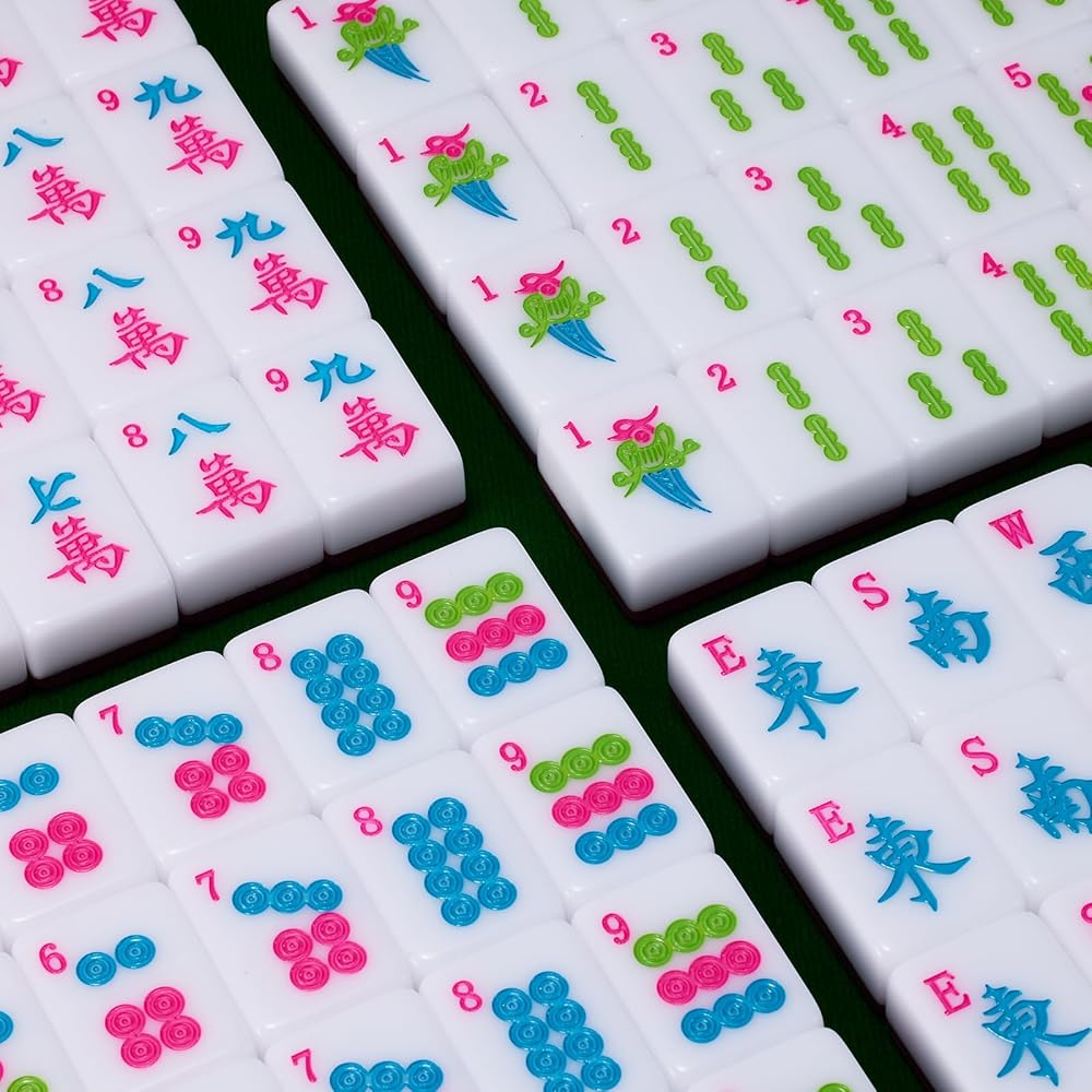 174 بطاقة ماجونج عالية الجودة: بطاقات ماجونج عالية الجودة مصنوعة من مادة الأكريليك الأعلى مقاومة للخدش، بحيث يمكن للاعبين استخدامها لعقود من الزمن دون أي بهتان أو تشقق. وهذا يضمن أفضل شعور بلعب لعبة mahjong.