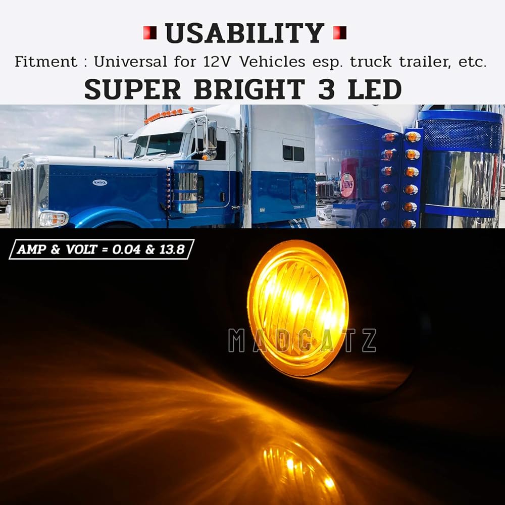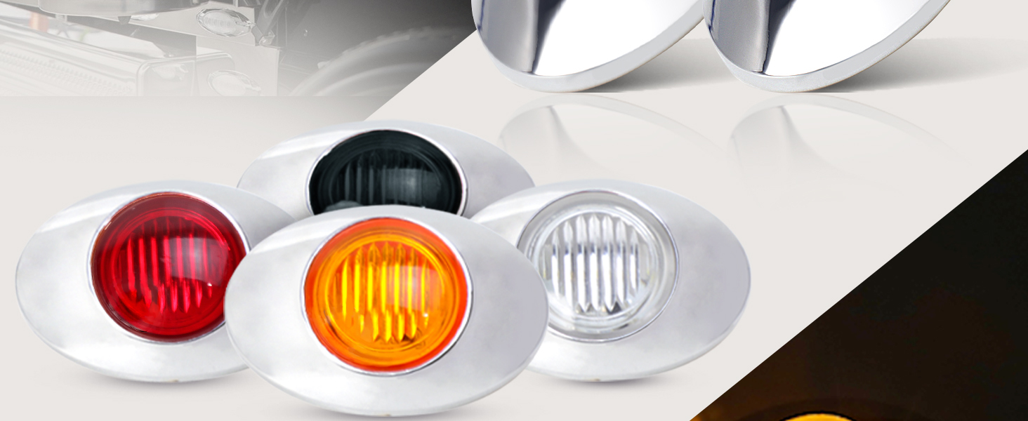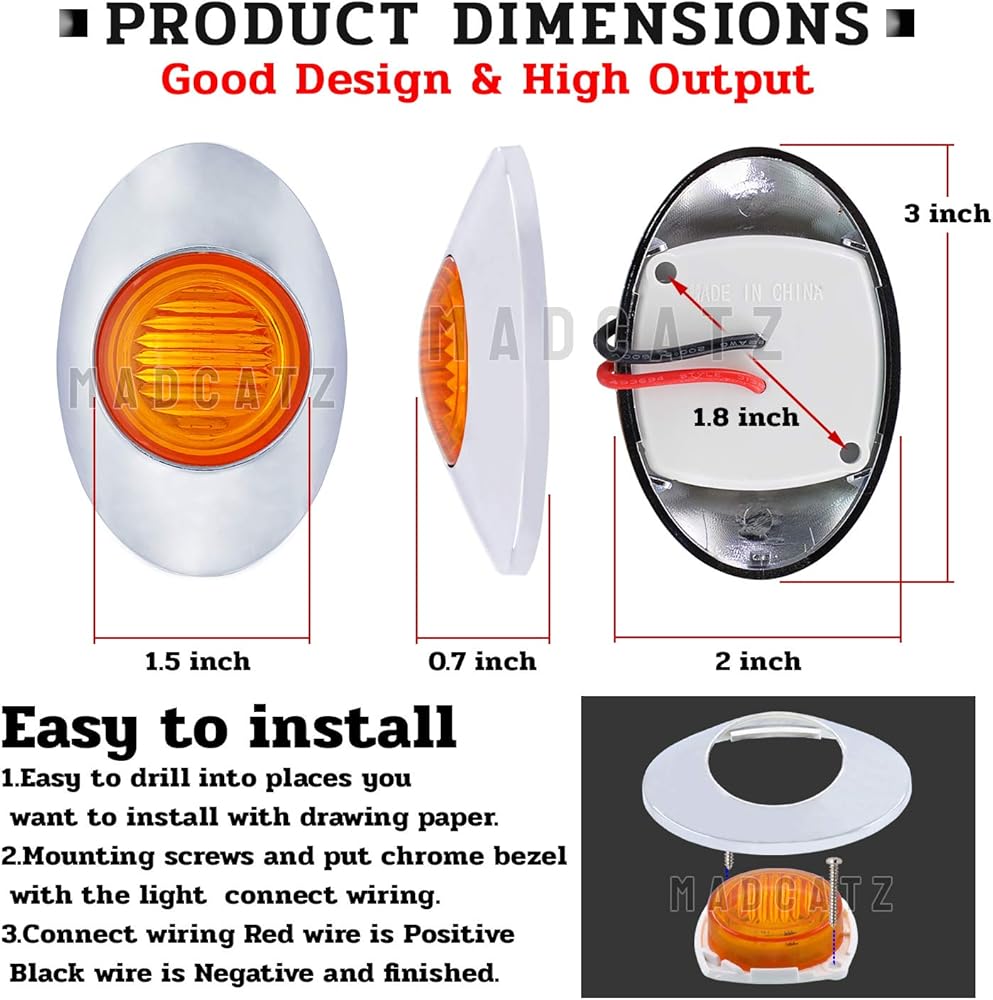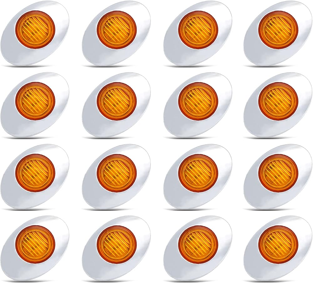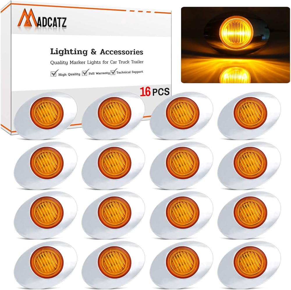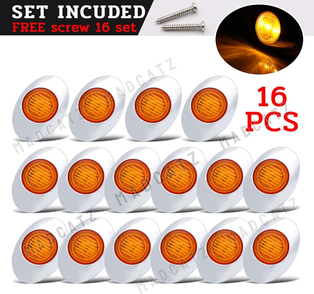 MADCATZ 3 بوصة (حزمة من 16) كهرمان بيضاوي صغير LED 3 ثنائيات جانبية لوحة ضوء مصباح دوران شامل مع إطار من الكروم لمقطورة الالتقاط RV Van Lorry Truck Boat Cabin 12V DC Low Q012