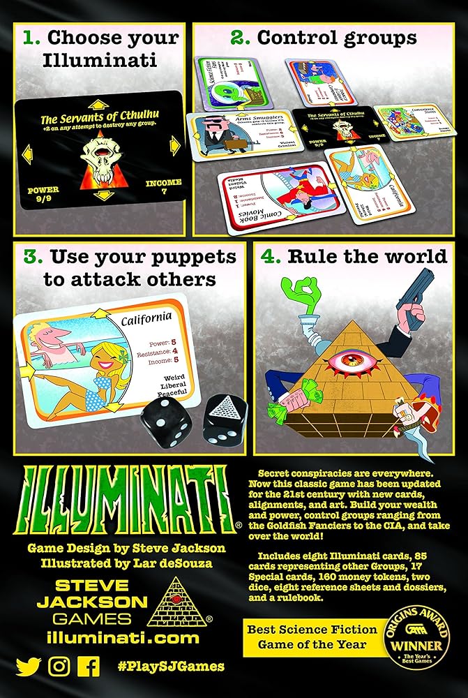 لعبة المتنورين الإصدار الثاني لعبة النرد بطاقة العائلة المؤامرة للبالغين والعائلة الذين تتراوح أعمارهم بين 13 عامًا فما فوق لمدة 2 - 6 لاعبين متوسط وقت اللعب 60 -120 دقيقة من ألعاب ستيف جاكسون