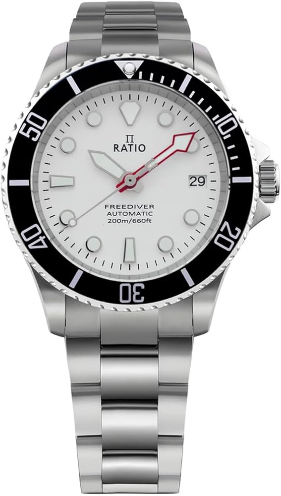 Introducing a dive watch that blends a sleek look with rugged features that can withstand anything. A classic steel dive watch with a 316L stainless steel case and bracelet that exudes elegance, make it an ideal choice for both diving expeditions and everyday wear. Inspired by high-end watch designs by popular Japanese watch brands, the classic black dial with distinct hands and markers sits prominently to ensure readability in all conditions. The case back is engraved with the image of a free diver as a celebration of the sport. With an approximate case diameter of 40mm and thickness of 13mm, this watch offers a comfortable fit for any wrist, perfect for those who value style and substance.