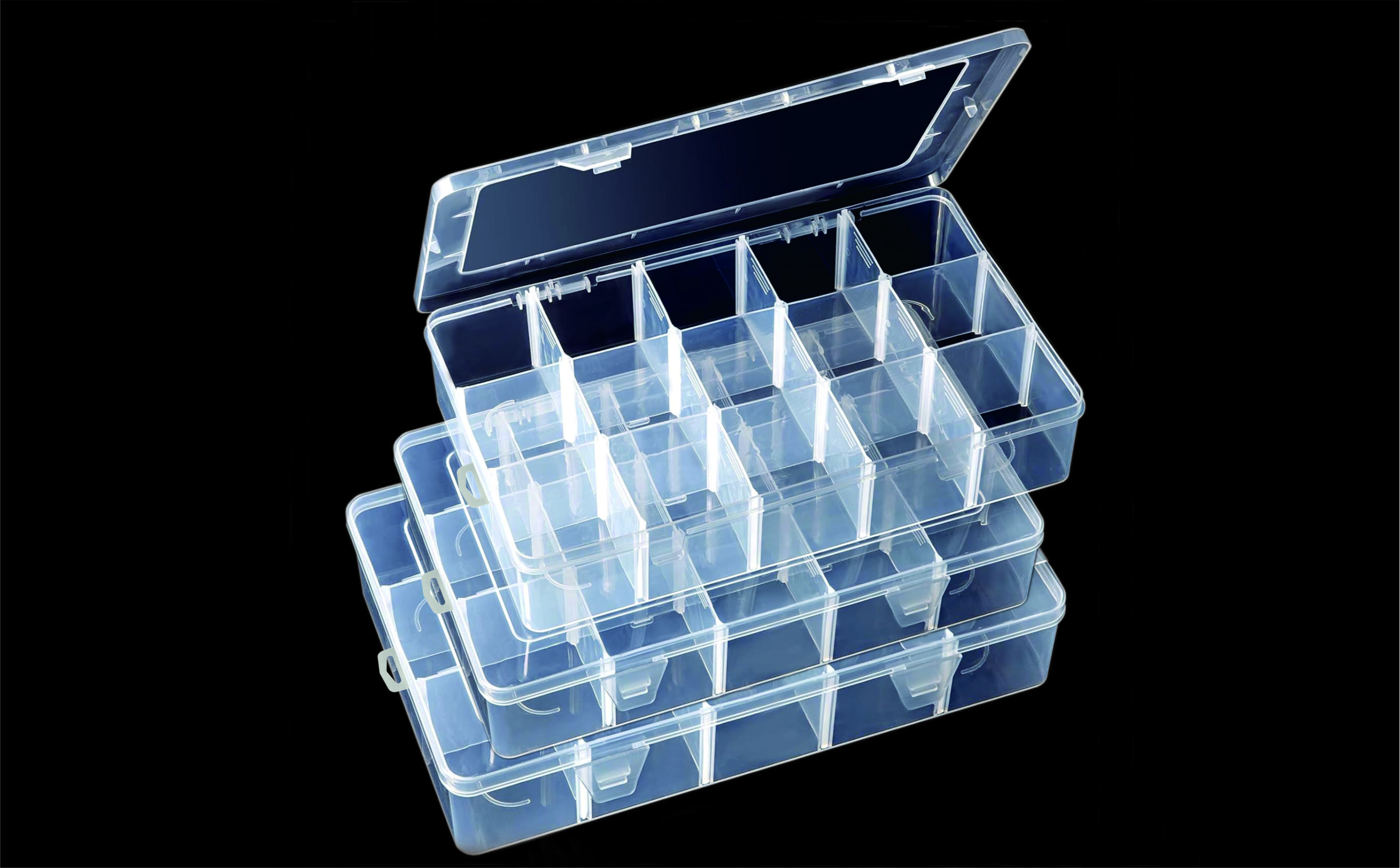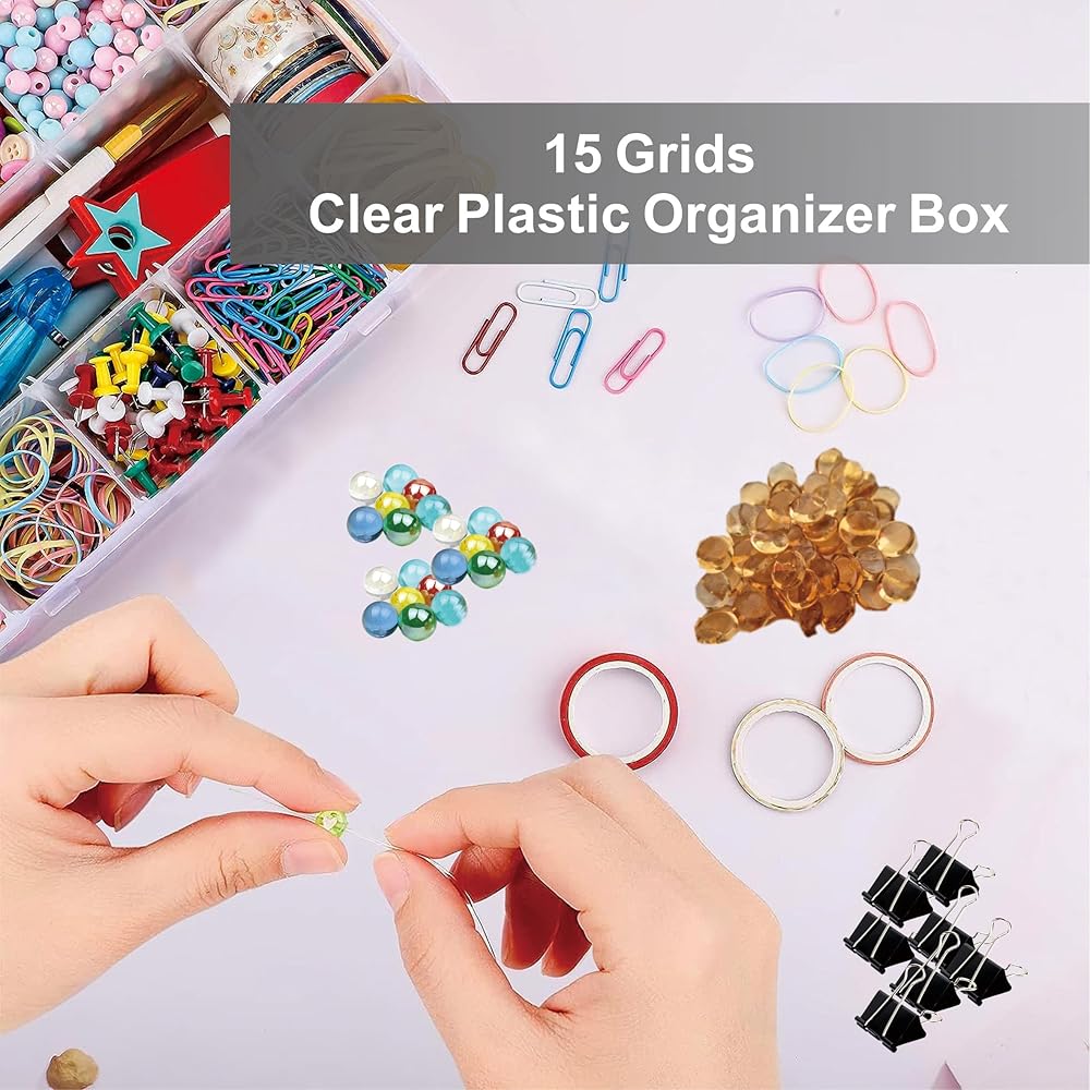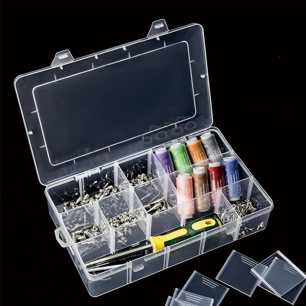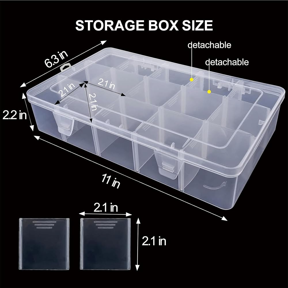 [سعة كبيرة وأقسام قابلة للإزالة]: صناديق تخزين شفافة كبيرة تخزن كل شيء صغير، من المجوهرات إلى الحرف اليدوية، وتقسيمها بسهولة مع الحفاظ عليها آمنة من الآفات والغبار. يمكن تعديل الشبكات الـ 15 الموجودة في الصندوق لتلبية احتياجات الأحجام المختلفة.