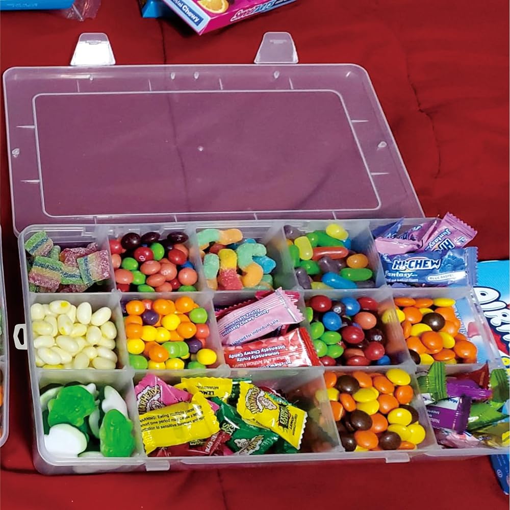 صندوق منظم كبير من البلاستيك الشفاف مكون من 15 شبكة مع فواصل، حاوية تخزين بلاستيكية قابلة للتعديل، صندوق تخزين الأجزاء الصغيرة، صندوق تخزين منظم الأدوات الصغيرة (3 عبوات)