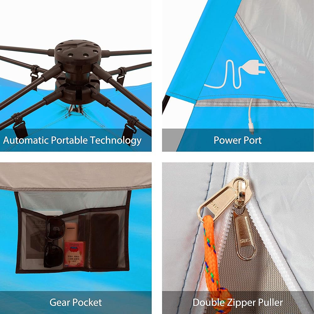• تفاصيل احترافية: توفر هذه الخيمة الخارجية منفذ سلك كهربائي يمكن الوصول إليه حتى تتمكن من توصيل الأجهزة الكهربائية بسهولة. تتميز سحابات SBS المزدوجة ذات الاتجاهين بأنها ناعمة، لذا يمكنك فتح وإغلاق الأبواب كما تريد. يمكن للجيوب الشبكية ذات السعة الكبيرة تخزين أي ضروريات تحتاجها في متناول اليد.