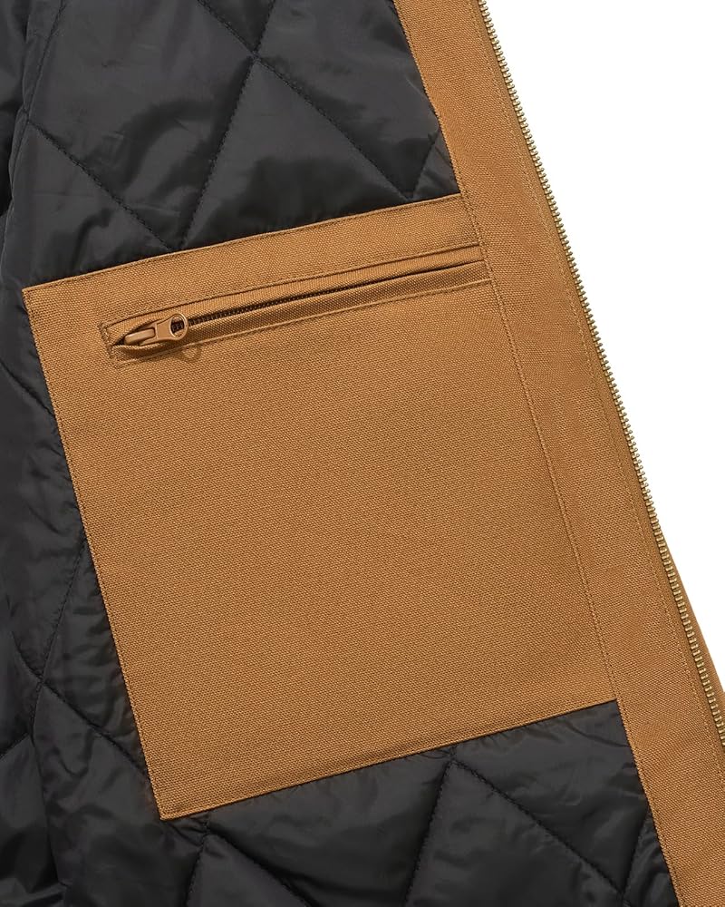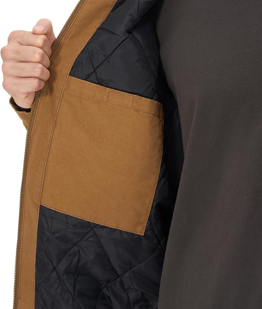 متين ودافئ: تتميز هذه السترة الفضفاضة المعزولة للرجال بغطاء من القماش عالي الكثافة بوزن 10.5 أونصة، مما يجعلها قوية ومتينة. الجسم والأكمام وغطاء الرأس مملوء بـ 120 جرام من العزل ومكمل ببطانة مبطنة، مما يوفر دفء متوسط ليبقيك مرتاحًا ودافئًا في أيام العمل الباردة.
