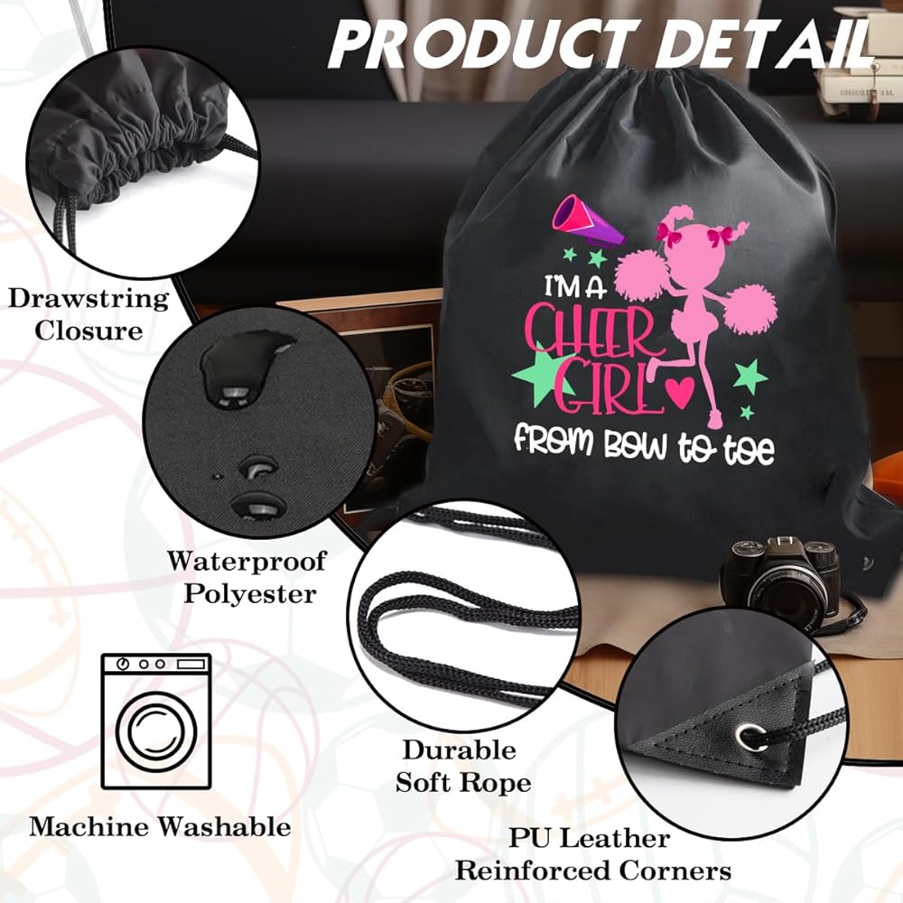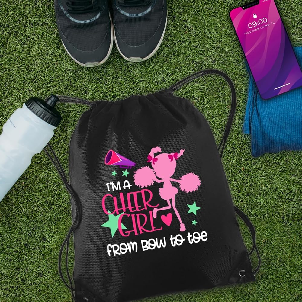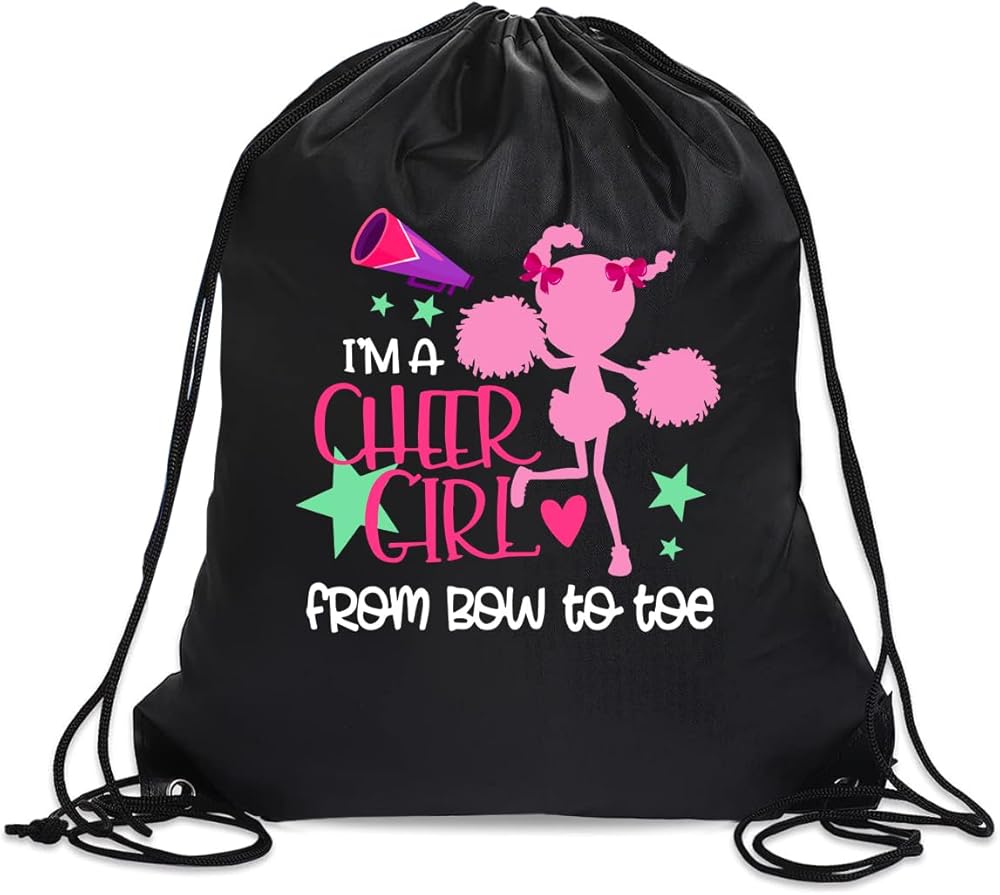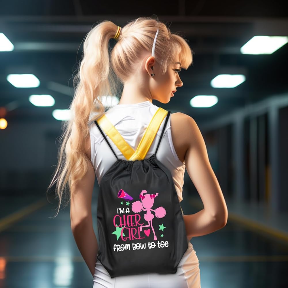 أنا فتاة مبهجة من القوس إلى أخمص القدمين حقيبة ظهر برباط للنساء، حقيبة رياضية مقاومة للماء لمحبي البهجة، هدايا عيد الميلاد المضحكة لعيد الميلاد لقائد البهجة