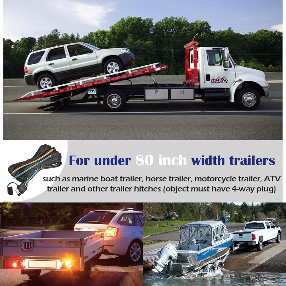 😊سهل الاستخدام: سلك إضاءة المقطورة هذا طويل بما يكفي للتمدد، وفي الوقت نفسه فإن التصميم المرن يجعل دائرة ضوء التشغيل منفصلة عند موصل المقطورة، لذلك لا حاجة للقفز بسلك من ضوء خلفي إلى آخر، وهو أمر بسيط ومريح.