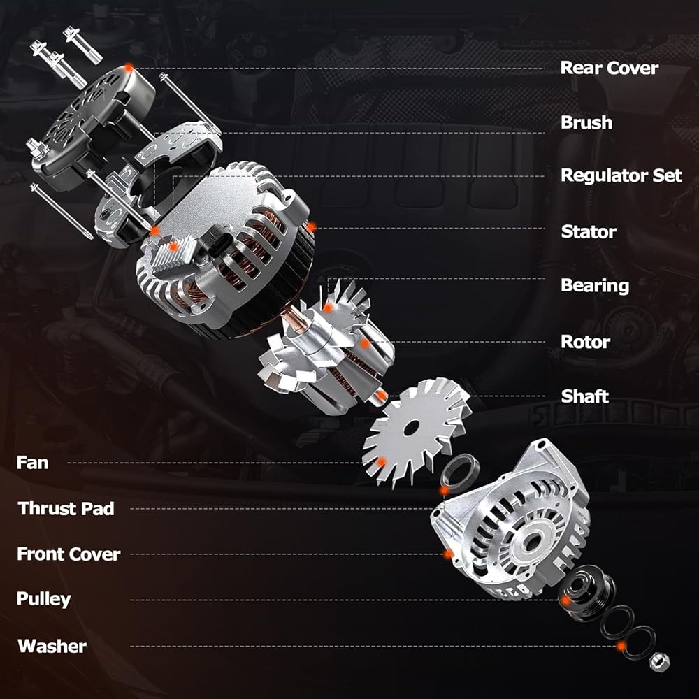[مولد كهربائي عالي الكفاءة]: تم تجهيز المولد الخاص بنا بملف نحاسي متقدم لتوفير خرج كهربائي ثابت ومستقر، مما يضمن التشغيل الفعال للأنظمة الإلكترونية لسيارتك للحصول على تجربة قيادة أكثر سلاسة