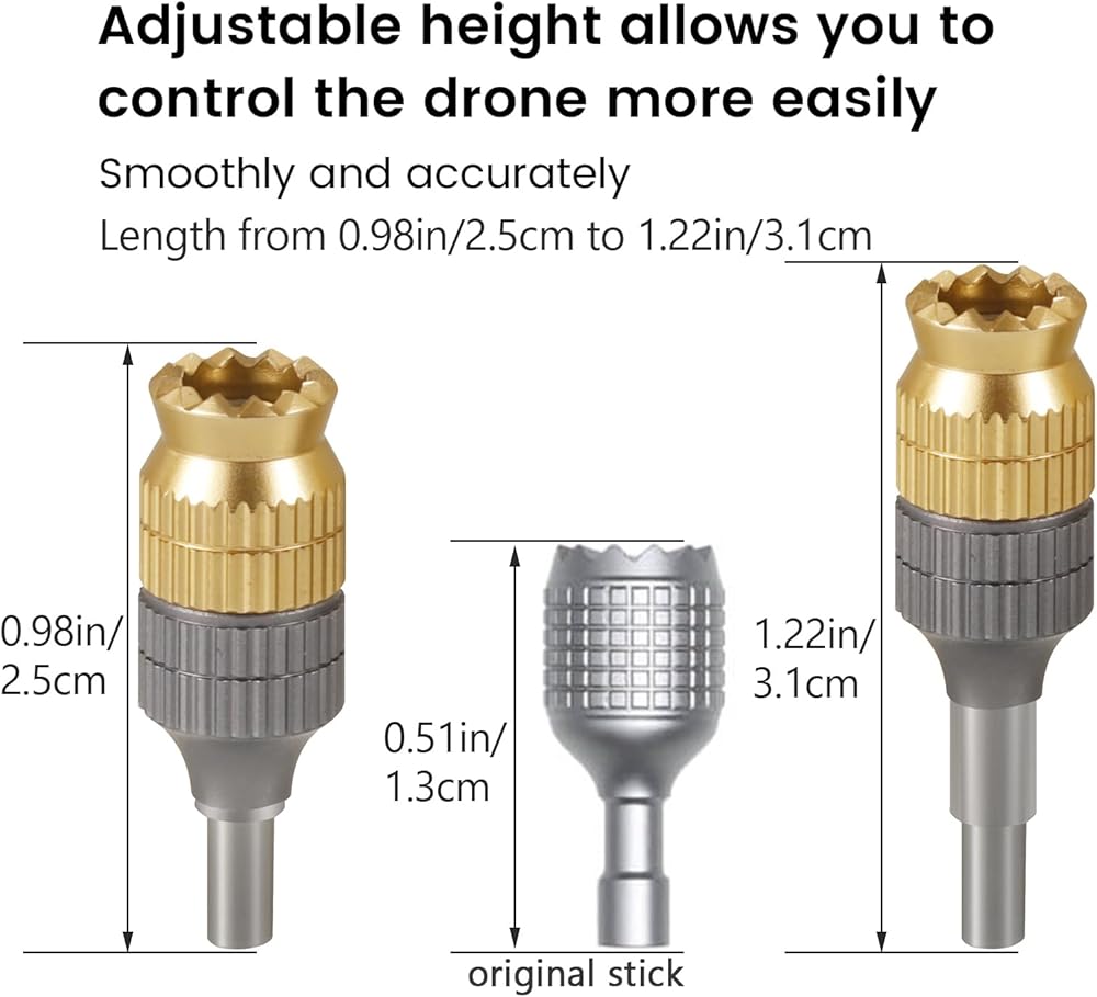 Adjustable Suitable size, Adjustable length from 0.98in to 1.22 inches(25-31mm)the higher the joystick, the bigger the swing and the more sensitive the control.