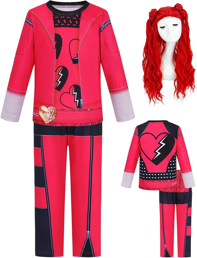 زي أحمر للفتيات مع شعر مستعار أحمر للأطفال أزياء الهالوين ملابس تنكرية للفيلم وبنطلون وقميص لحفلات أعياد الميلاد