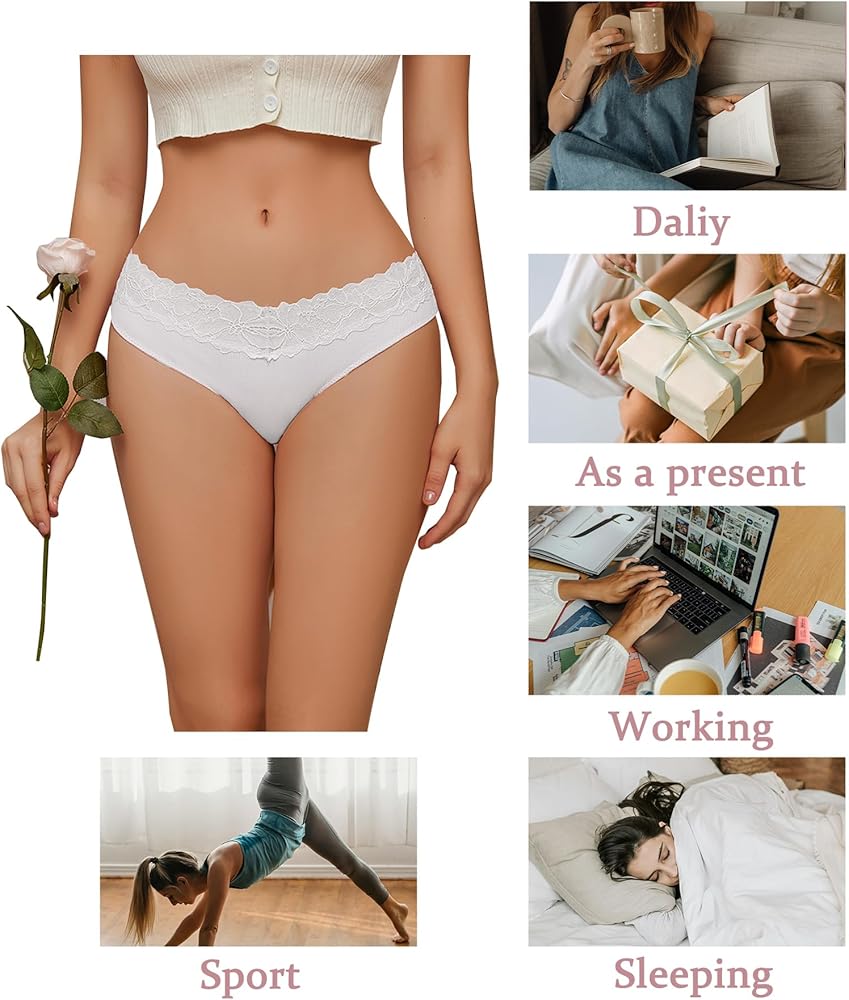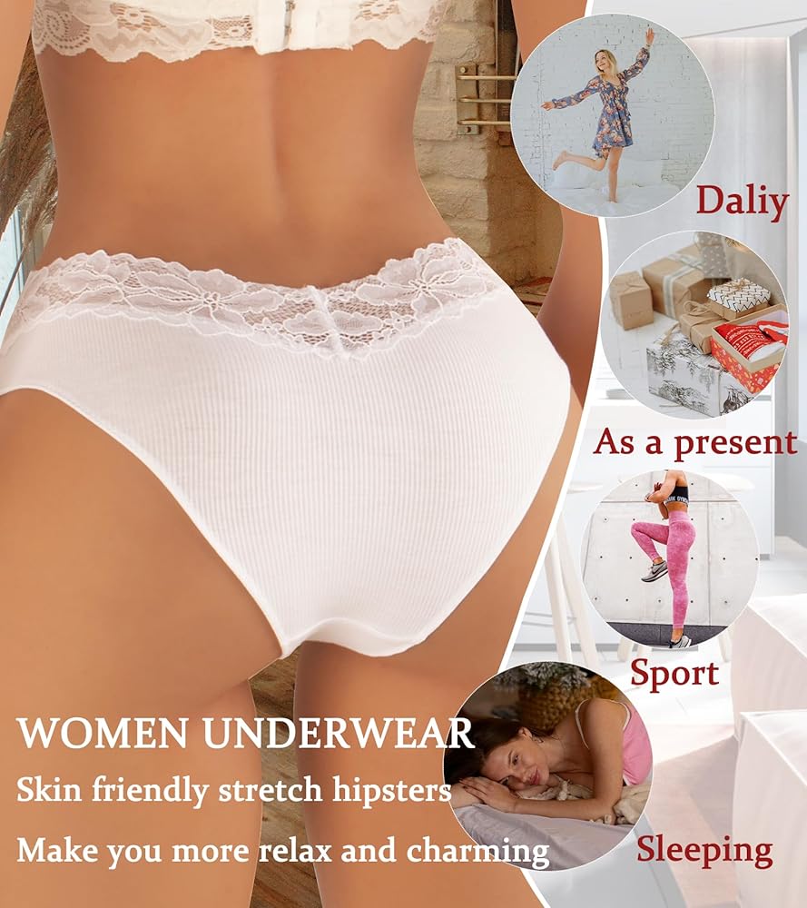 ملابس داخلية نسائية صحية ولا تبهت - ملابس داخلية مريحة على طراز هيبستر، مزيج من البولي أميد والألياف المرنة يجعل الملابس الداخلية ذات الدانتيل لحماية الورك ناعمة ومريحة للغاية. لن تبهت، ويمكن أن تمنع الحكة وتهيج الجلد، مما يجعل من السهل عليك قضاء كل يوم