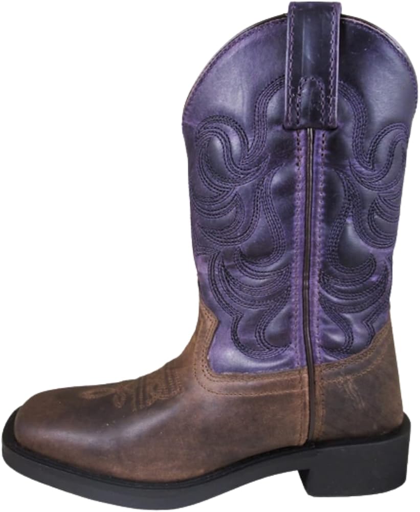 These Smoky Mountain Boots Tucson 3222 series style western boots are high quality, durable, and most importantly, affordable boots that are offered in both Children's and Youth Sizes. Whether youre looking for a classic cowboy boot or an everyday work boot, these boots are a great choice for your special cowboy or cowgirl! The boots feature high-quality brown oil distress and dark purple leather with tricot lining, rubber sole, block heel and a classic square toe.