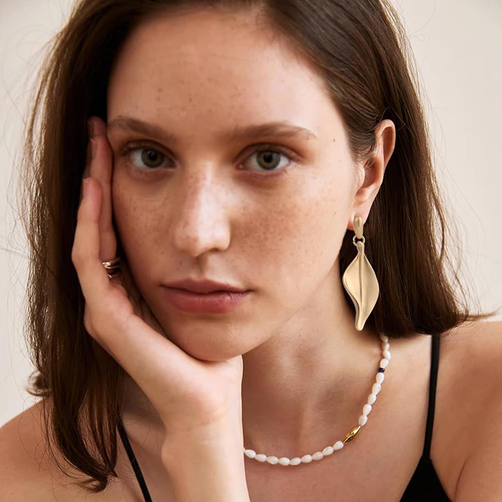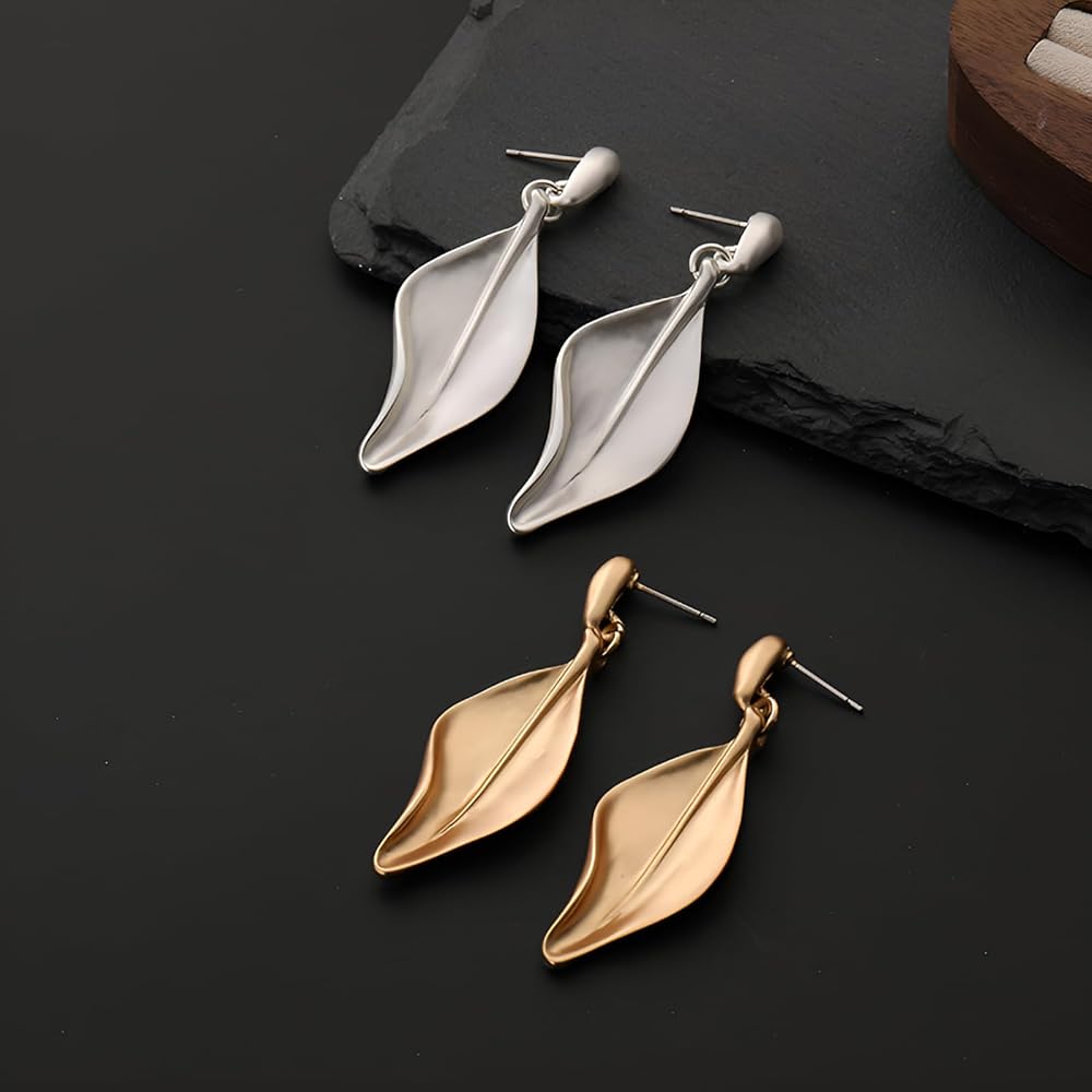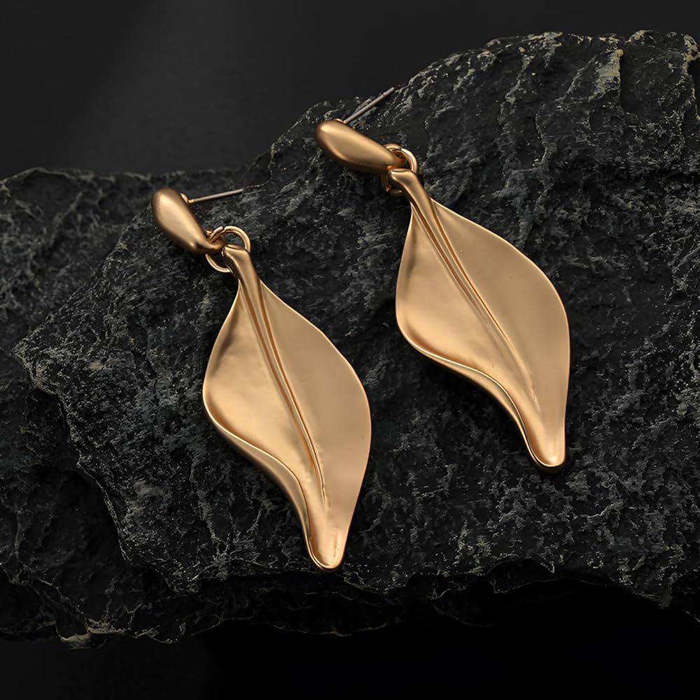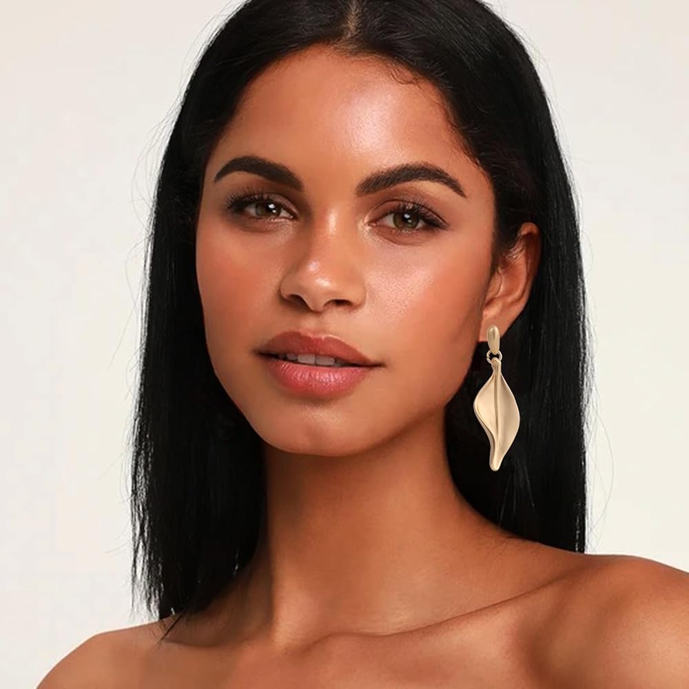 أناقة خالدة: تم تصميم أقراطنا الذهبية المتدلية بعناية شديدة بالتفاصيل، وتتميز بأناقة خالدة. يضيف تصميم الأوراق الكلاسيكي لمسة من الرقي، مما يجعلها قطعة مميزة تبرز بأناقة