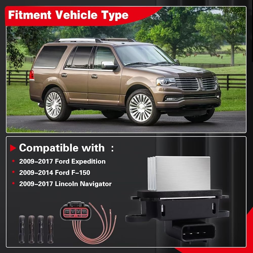 【Compatible with】2009 F150 AC Blower Motor Resistor ,2010 F150 AC Blower Motor Resistor ,2011 F150 AC Blower Motor Resistor ,2012 F150 AC Blower Motor Resistor ,2013 F150 AC Blower Motor Resistor ,2014 F150 AC Blower Motor Resistor . 2009 Expedition AC Blower Motor Resistor,2010 Expedition AC Blower Motor Resistor,2011 Expedition AC Blower Motor Resistor,2012 Expedition AC Blower Motor Resistor,2013 Expedition AC Blower Motor Resistor,2014 Expedition AC Blower Motor Resistor,2015 Expedition AC Blower Motor Resistor,2016 Expedition AC Blower Motor Resistor,2017 Expedition AC Blower Motor Resistor.