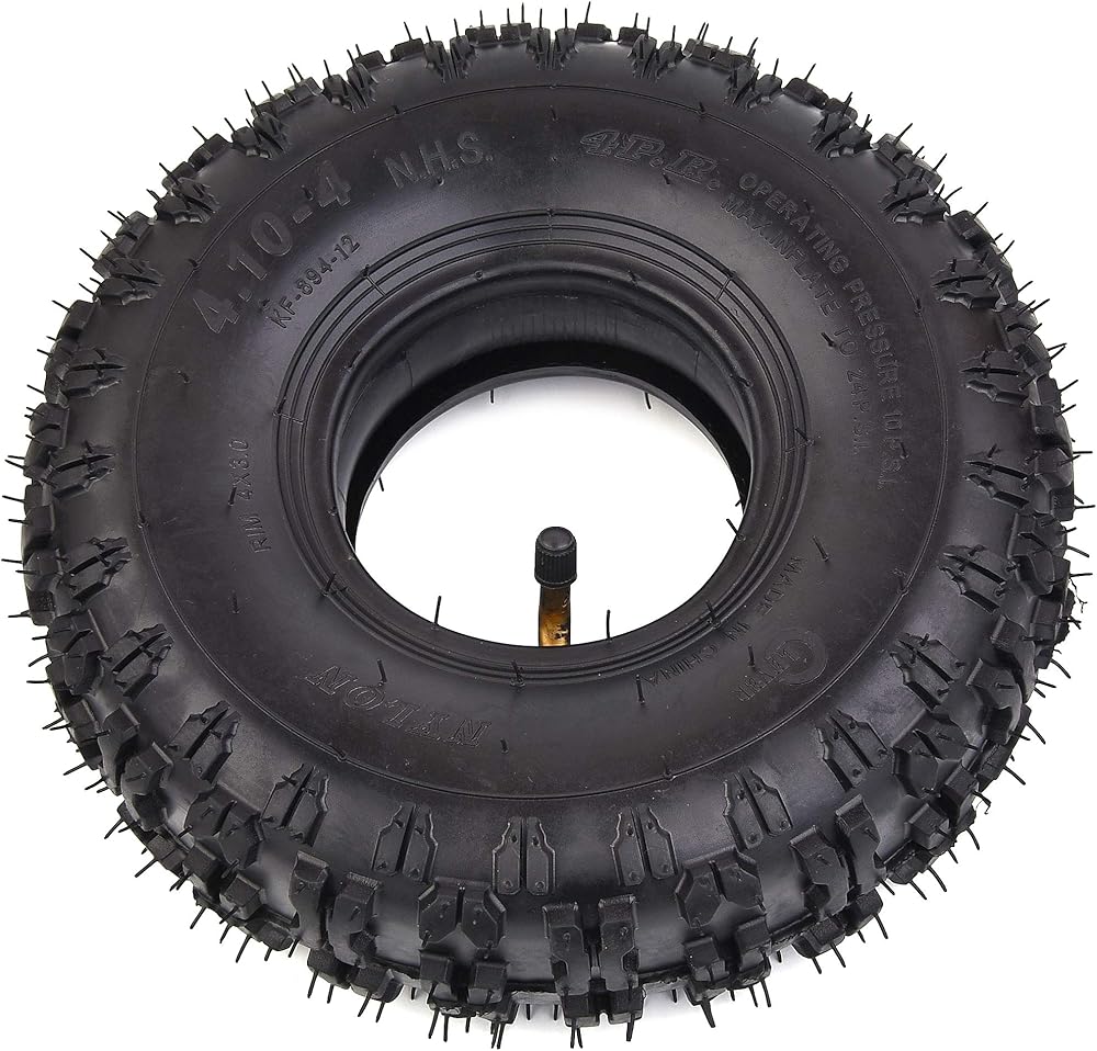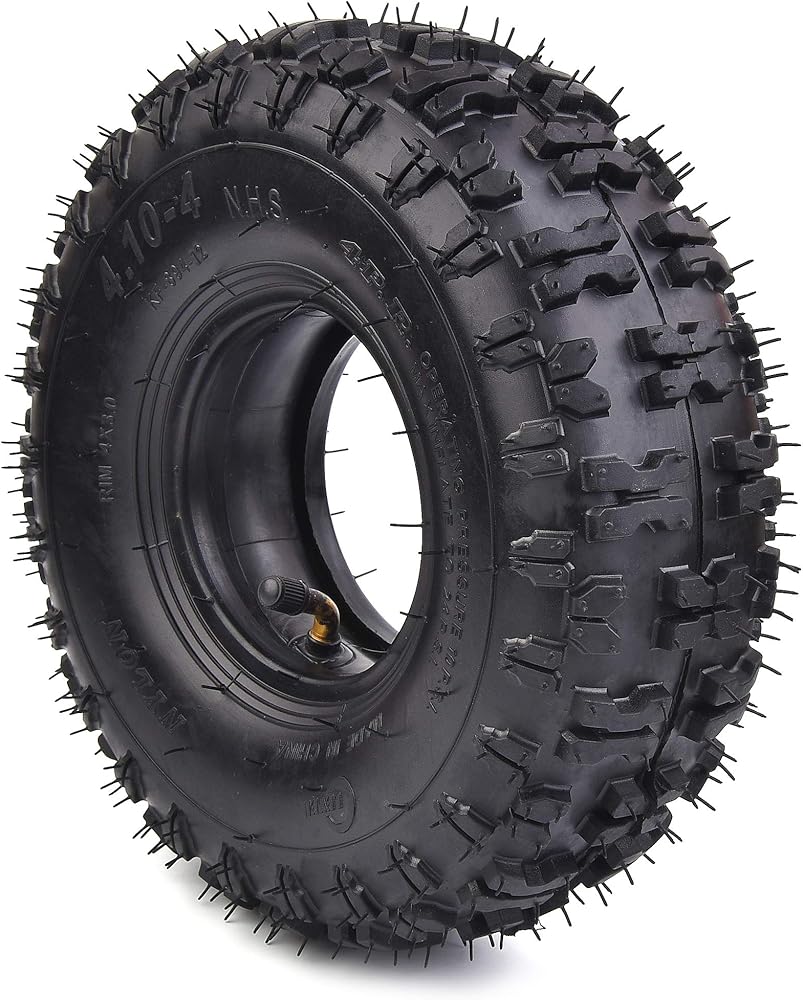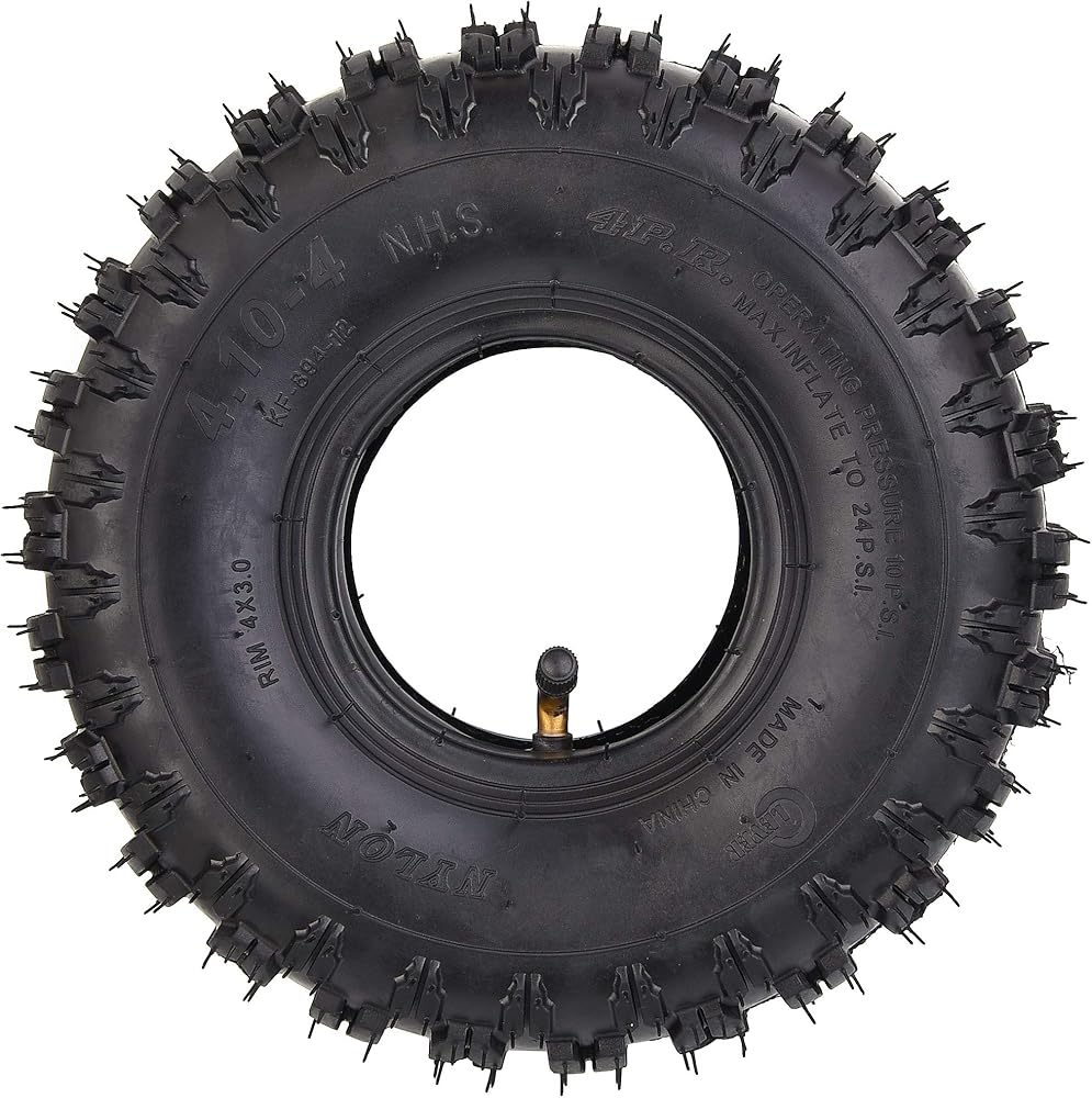 • Brand New 4.10-4 410-4 Tyre Tire for Garden Rototiller Snow Blower Go Cart Kid ATV, Inner Tube Valve Stem: Angled Stem TR87