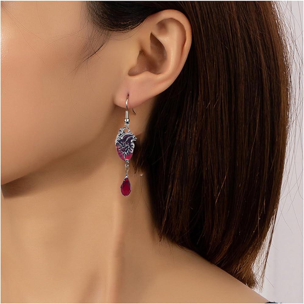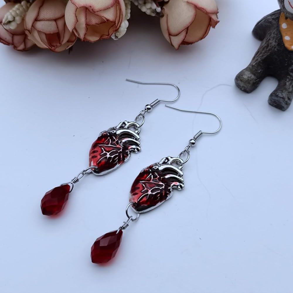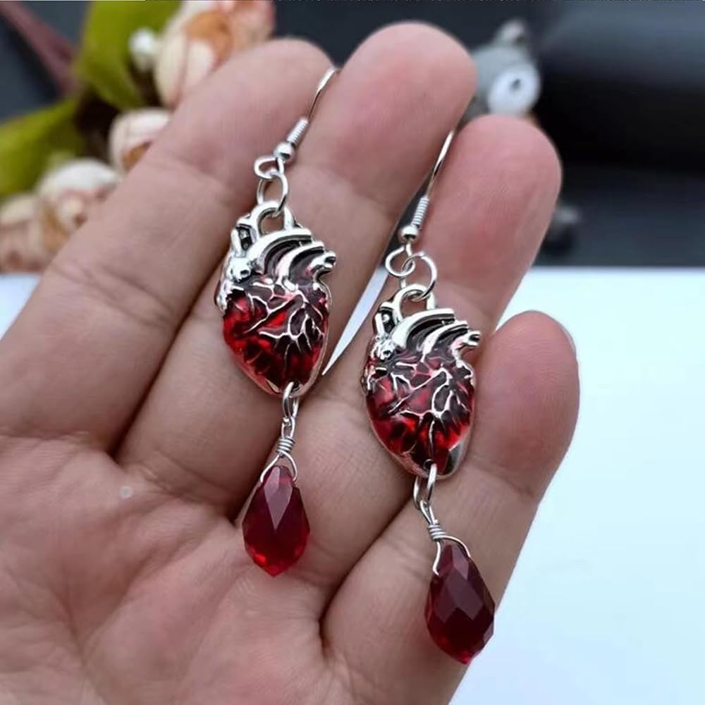 【 حلق متدلي على شكل قلب بشري 】 - هذه الأقراط على شكل دمعة على شكل قلب أحمر قوطي تتماشى مع معظم الملابس اليومية وتبدو رائعة مع ملابس y2k والقوطية ويمكن استخدامها كزي للهالوين أو عيد الحب.