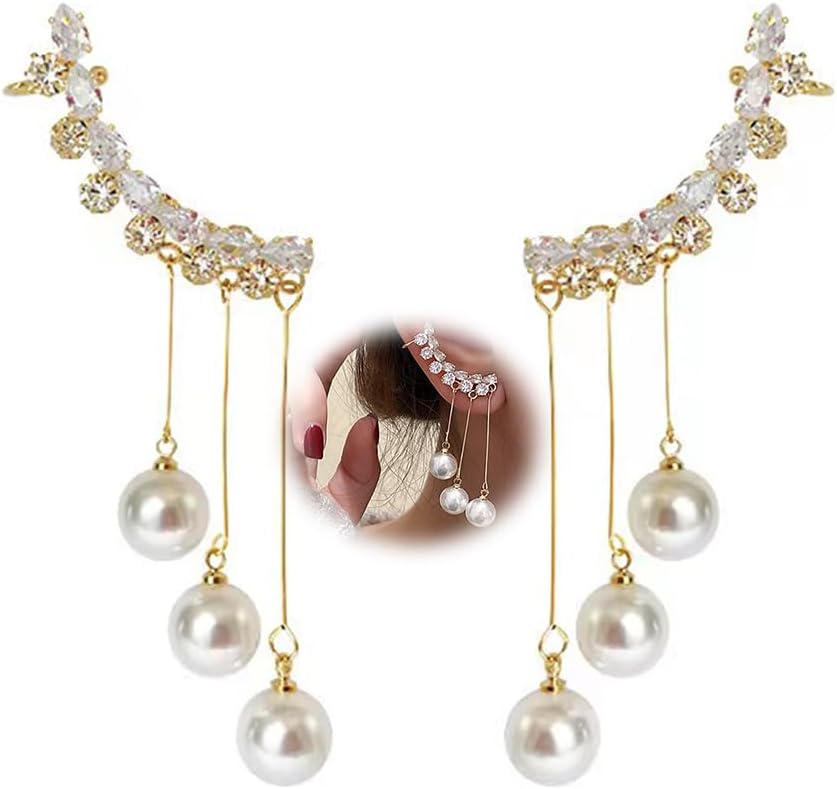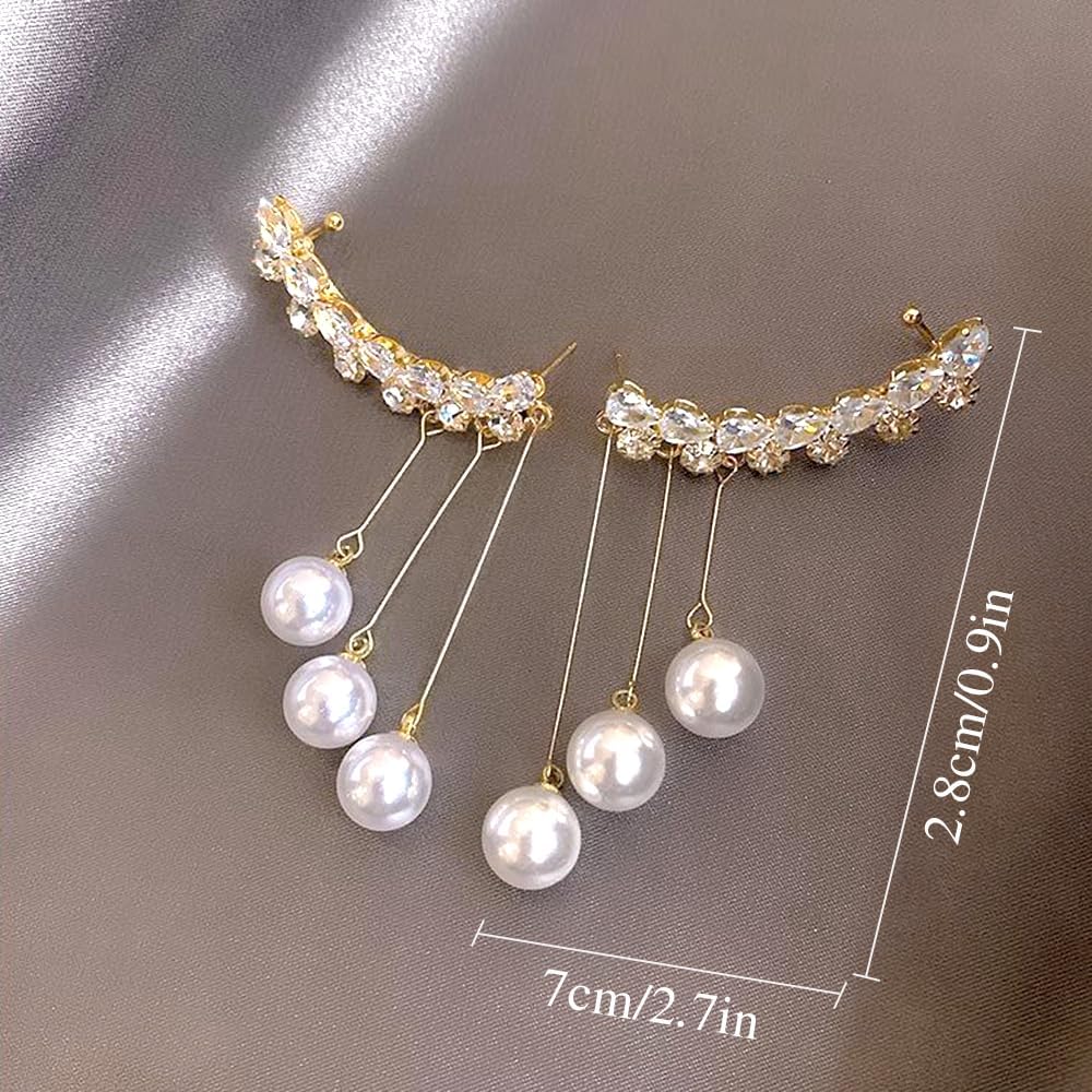 شرابة طويلة أقراط اللؤلؤ حجر الراين أقراط الماس لامعة حجر الراين الأذن الأصفاد مجوهرات للنساء