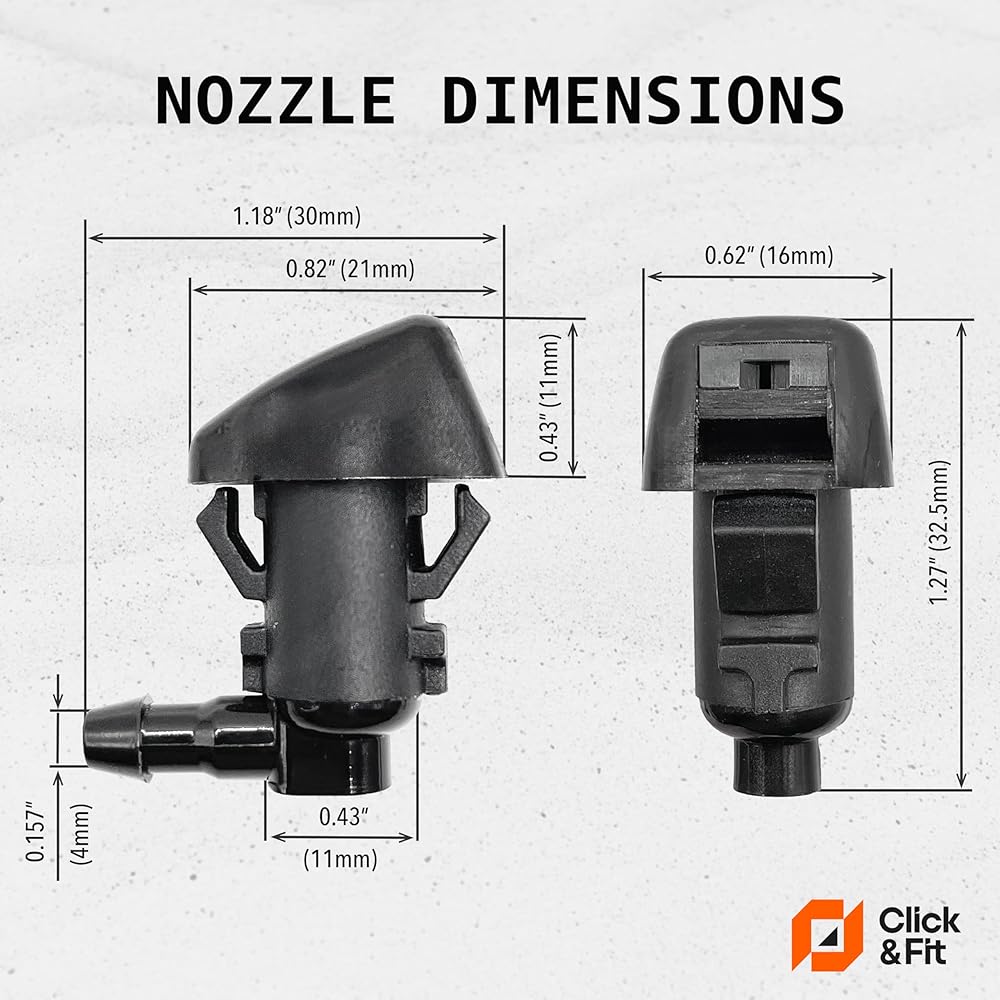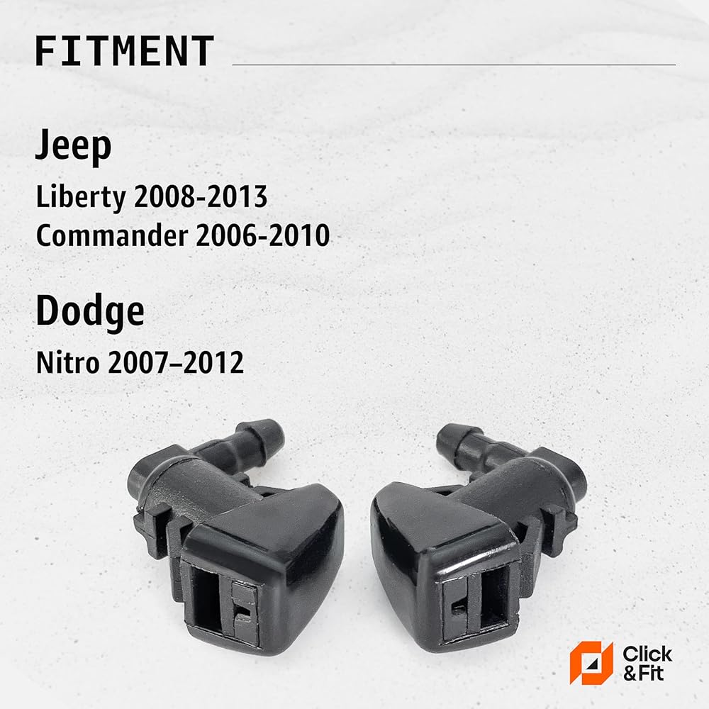 فوهات غسيل الزجاج الأمامي Click&Fit المتوافقة مع Jeep Liberty من 2008-2013 - رشاشات المياه النفاثة الأمامية تحل محل 55157319AA 4806312AA، مجموعة مكونة من قطعتين، اليمين واليسار