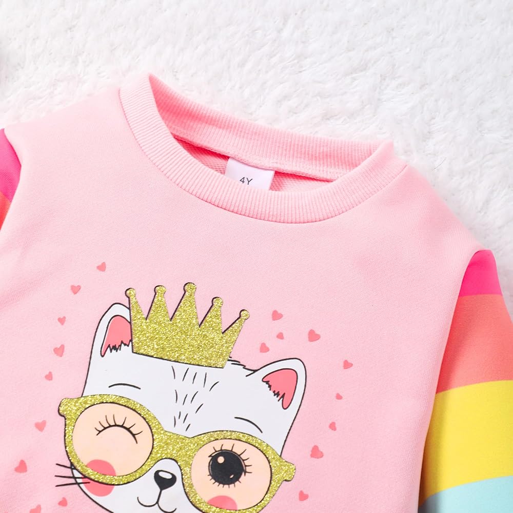 المزايا: ملابس Littel للفتيات مكونة من قطعتين مع طباعة قطط بألوان قوس قزح الشهيرة، ورقبة دائرية، بلوفر على شكل نمر، سويت شيرت لطيف على شكل قطة ومجموعة بنطلون، سيبدو أطفالك لطيفين ولطيفين. سروال بحزام خصر مرن، سيشعر طفلك بالدفء والحرية فيه.
