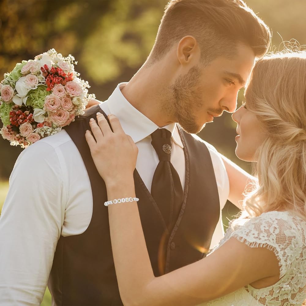 【مثالي لمجموعة متنوعة من المواضيع】سوار كلاسيكي مطرز باللؤلؤ العروس يكمل أي نوع من ملابس العزوبية. يعتبر سوار الزفاف هذا مثاليًا كلمسة نهائية لحفل زفافك بعد الحفل، بحيث تركز جميع الإنجازات عليك.
