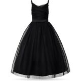 تصميم أنيق: يتميز فستان الفتيات هذا بطبقة من التول الخالدة وتصميم جذاب برقبة على شكل حرف V، مثالي لأي مناسبة رسمية