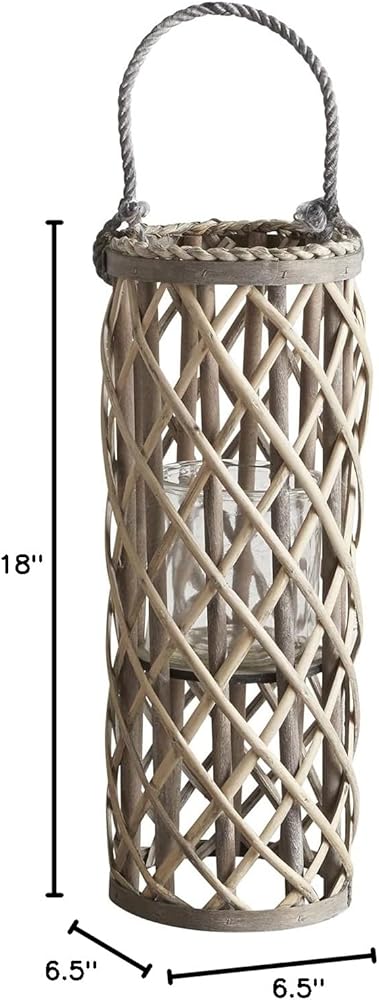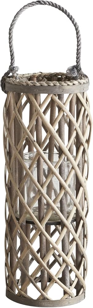 CYLINDER LANTERN CANDLE HOLDER; Slim design with rope handle and glass insert; adds beach house vibes to your home décor