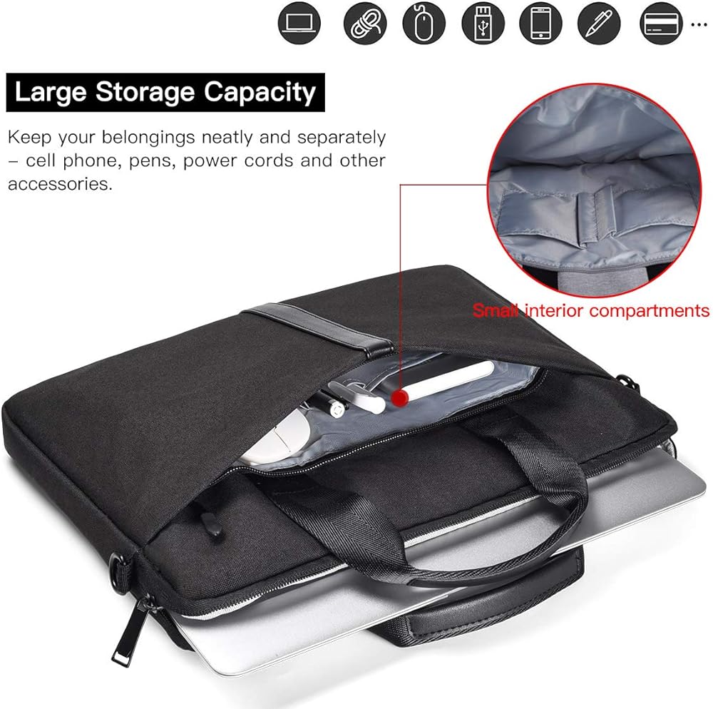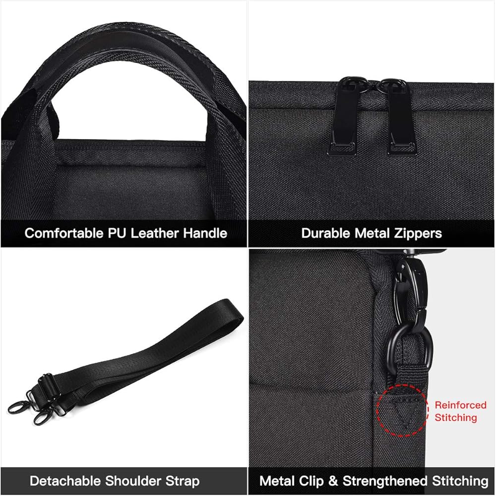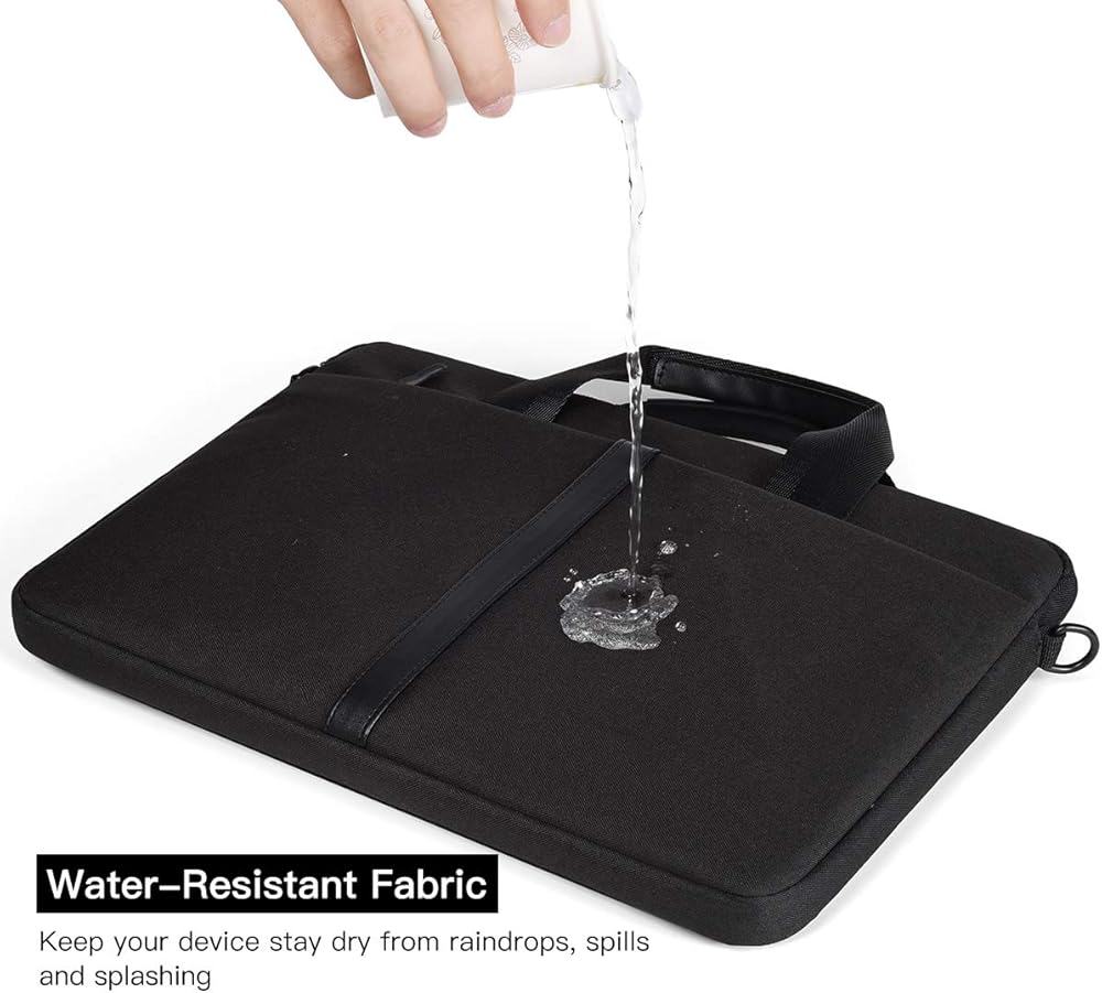• مقاوم للماء والرطوبة - مصنوع من قماش النايلون المقاوم للماء، يمكنه حماية جهازك من التلف بسبب قطرات المطر والانسكابات والمزيد. بفضل الجزء الداخلي المبطن الناعم الذي يمتص الصدمات، تحمي الحقيبة جهازك بشكل فعال من الصدمات والاهتزازات.