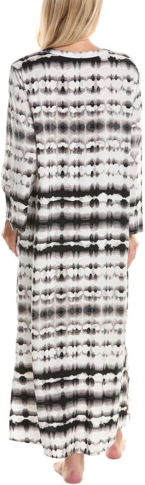 Lounge in tonal tie-dye printed on airy rayon crinkle. V-Neck caftan. Slits on both sides. Versatile, breathable and perfect for everyday wear and beachwear. Casual caftan that is flowy and easy to wear.