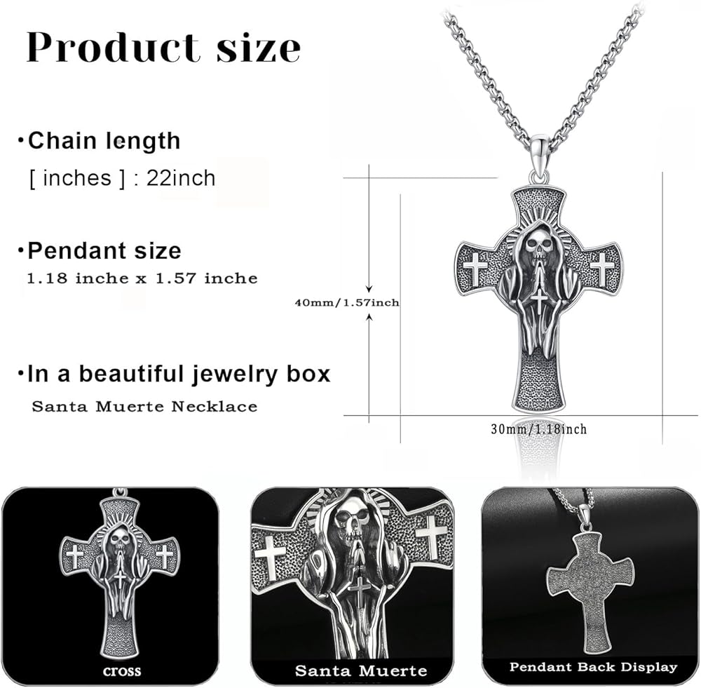 • Beautiful Gift: Comes in a beautiful gift box. Santa Muerte pendant is an ideal gift for men, women, parents, couples, friends. Suitable for Halloween, anniversary, birthday, Christmas, Father's Day, graduation, party, prom, Mother's Day, Valentine's Day, or for any special occasions.