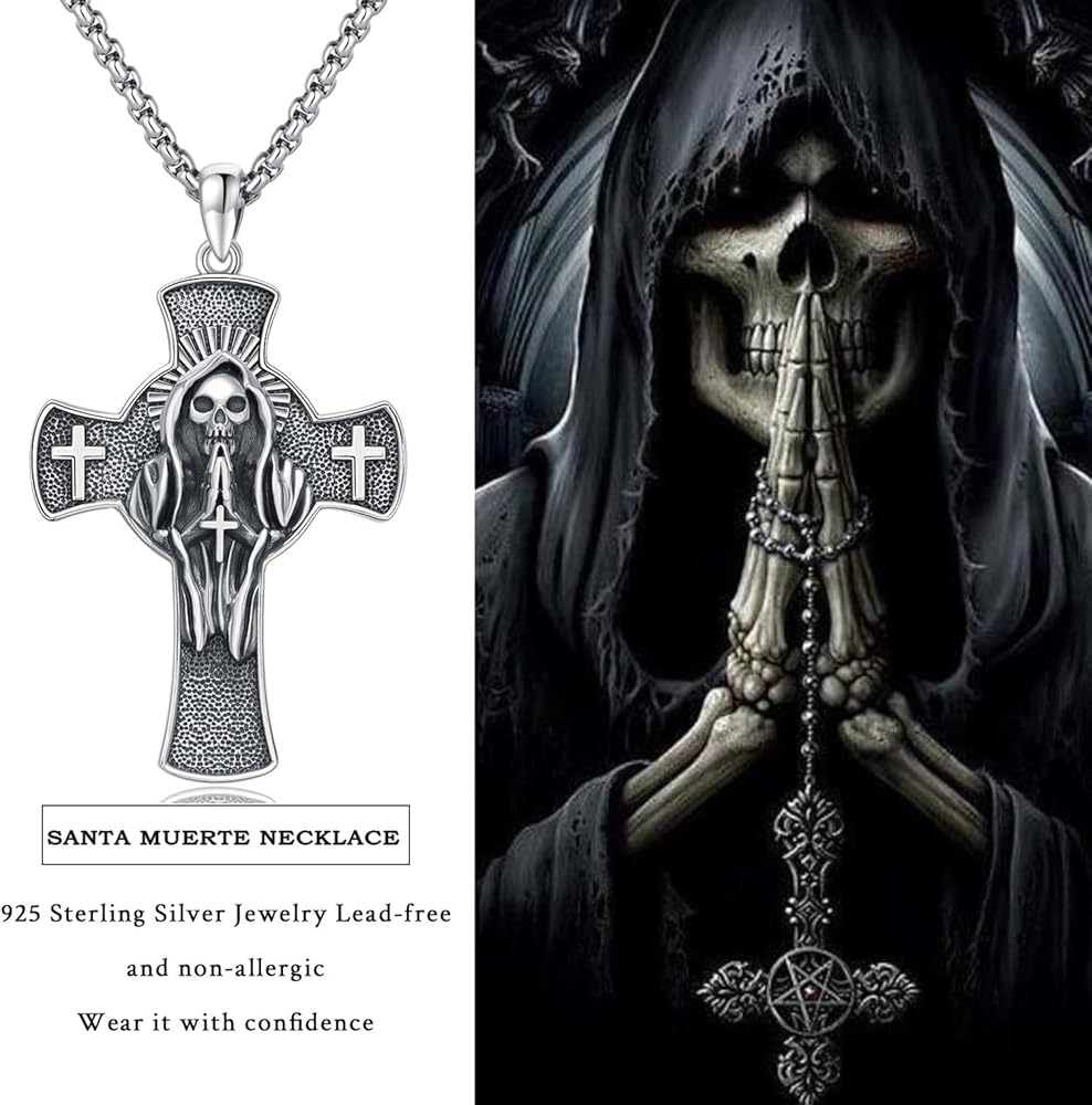 سانتا Muerte قلادة 925 الفضة الاسترليني قلادة الموت المقدس غريم ريبر قلادة سانتا Muerte قلادة القوطية هالوين مجوهرات هدايا للرجال النساء