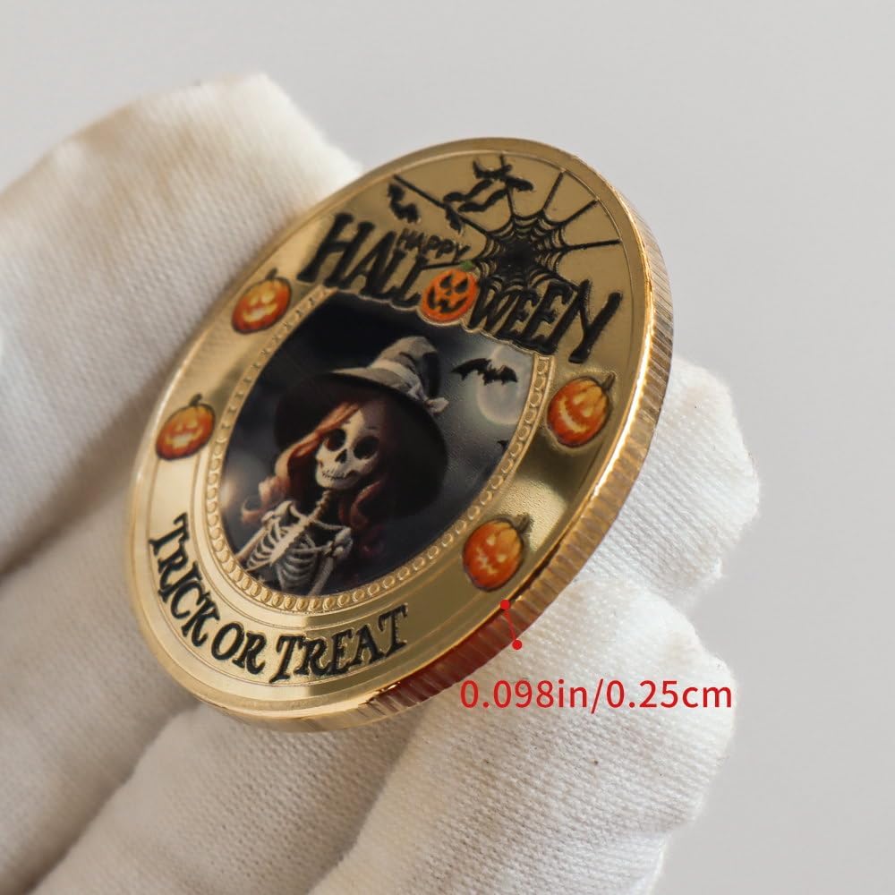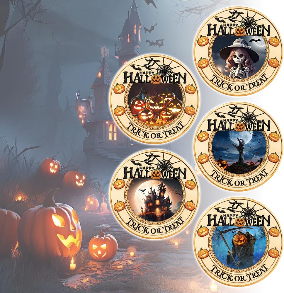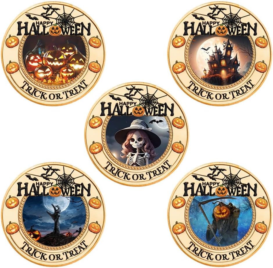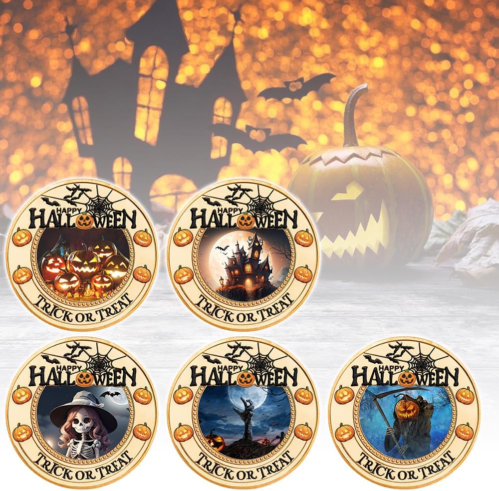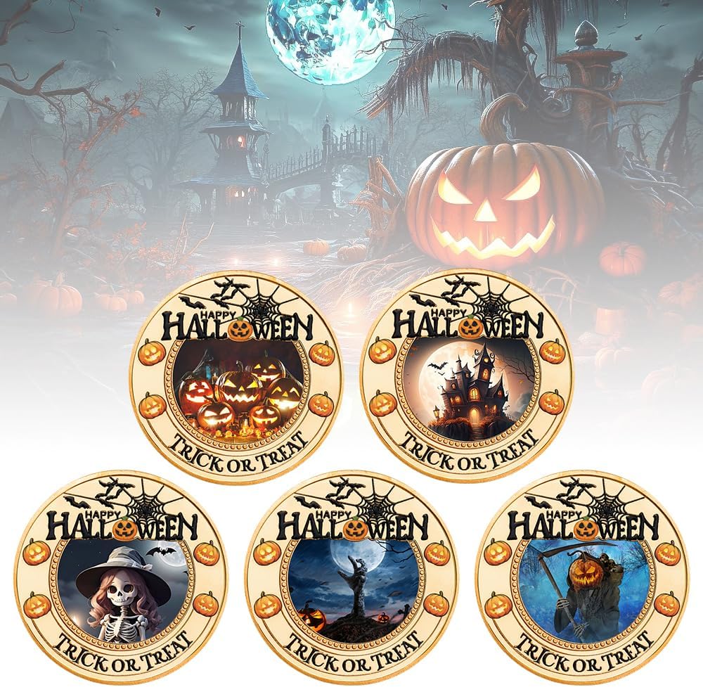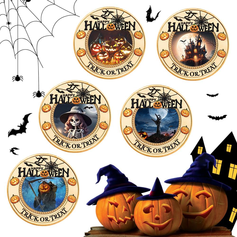 5 قطعة خدعة أو علاج هالوين عملات معدنية تذكارية لهواة التجميع مجموعة هالوين اليقطين الهيكل العظمي التحدي عملات تذكارية هدايا الحفلات لجمع