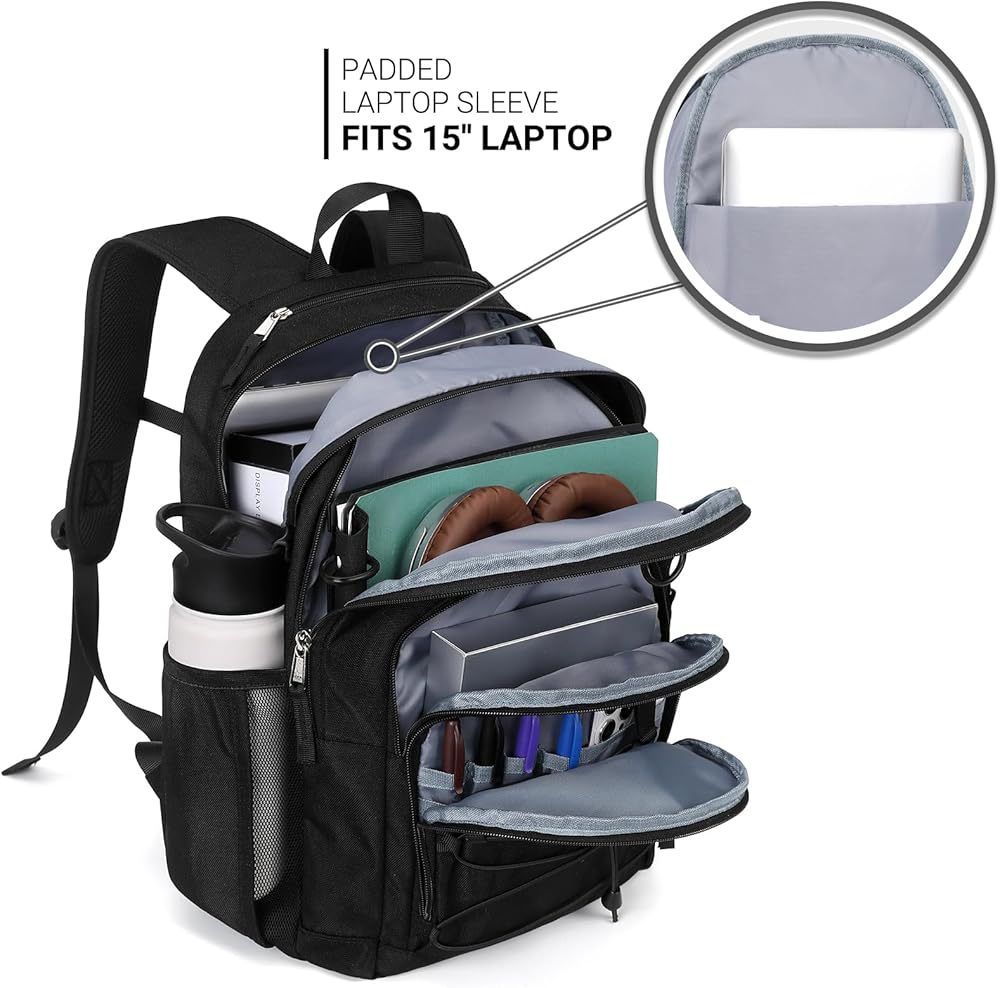 حقائب ظهر متعددة الجيوب - مع مساحة واسعة للحفاظ على تنظيم جميع أغراضك الأساسية وتسهيل الوصول إليها. تحتوي حقيبة الظهر المدرسية للسفر على مقصورتين رئيسيتين كبيرتين، وحقيبة كمبيوتر محمول مبطنة مقاس 15 بوصة، وجيب متوسط بسحاب، وجيب أمامي مع منظم، وجيب علوي مخصص وجيبين جانبيين لزجاجات المياه.