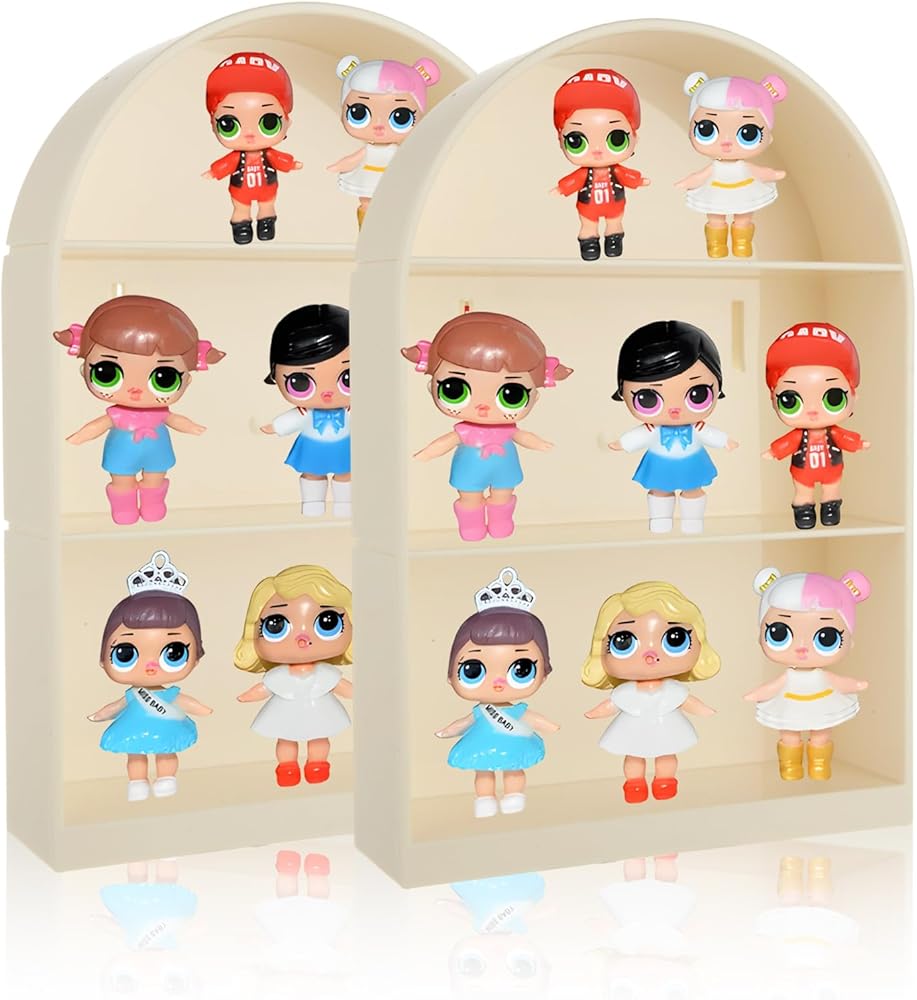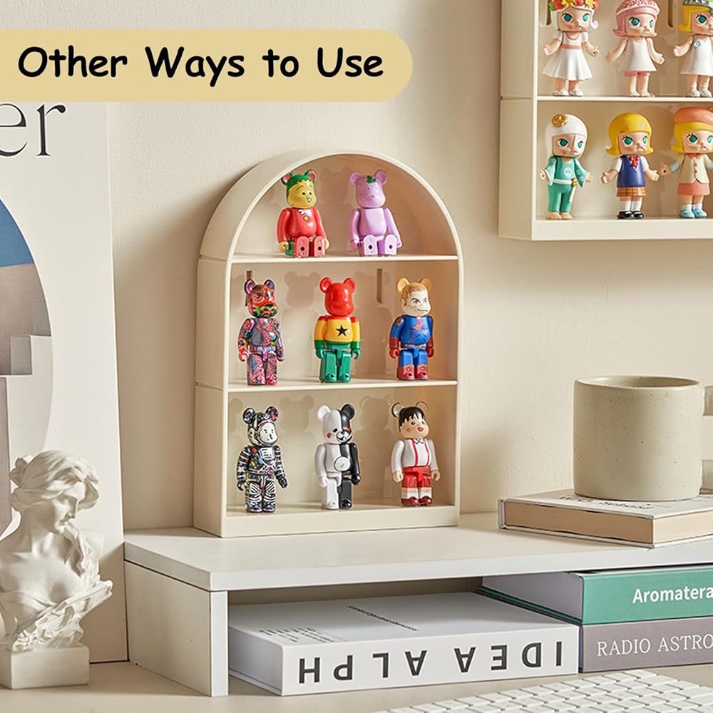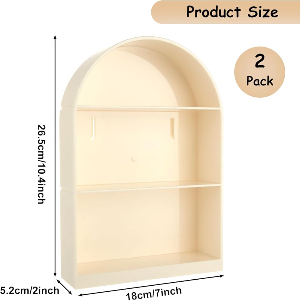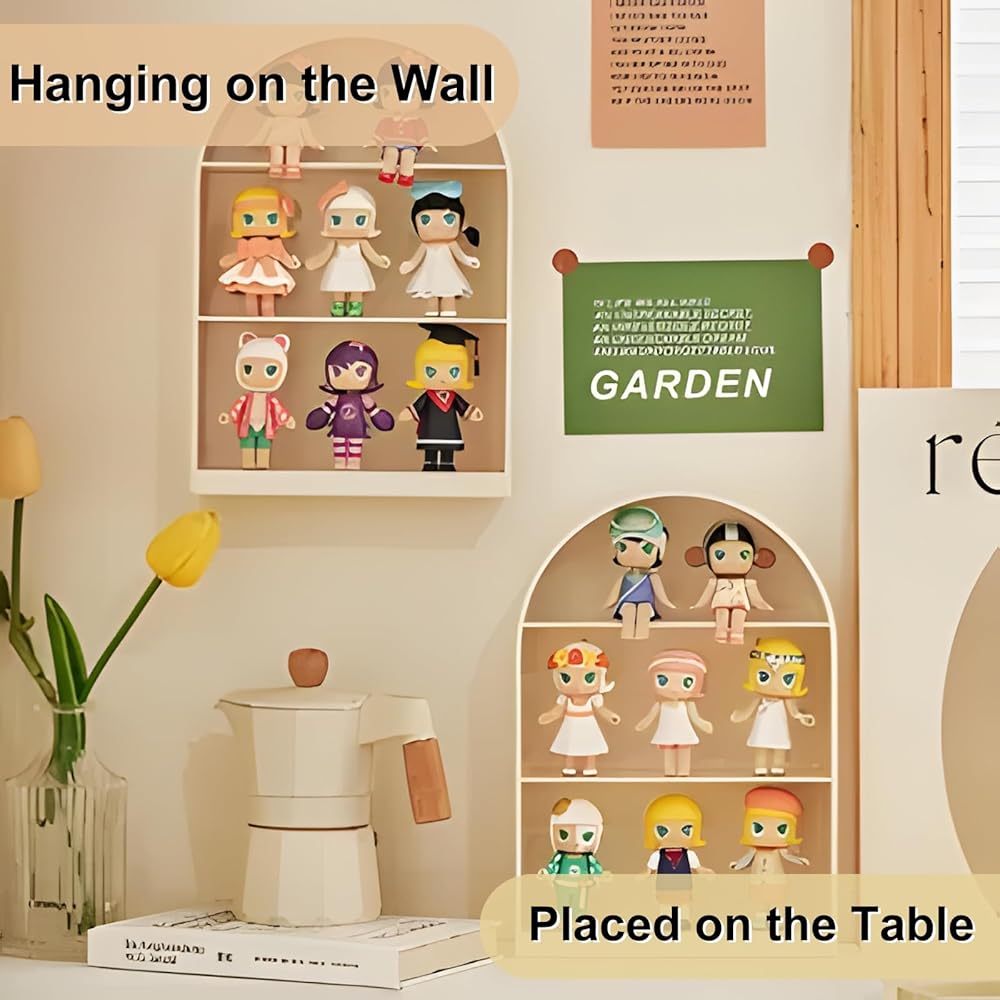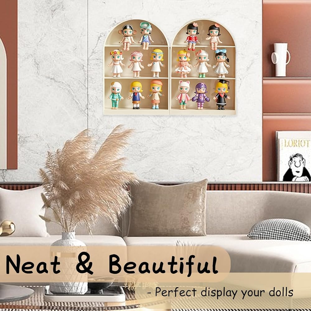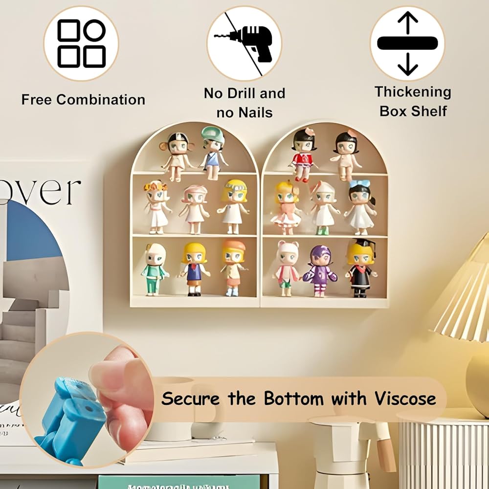 CYEAH 2 Pcs Display Case for Figures, Arch Wall-Mounted Doll Storage Box with Double-Sided Sticker, 3-tiers Collectibles Figures Showcase for Lego Collectibles Action Figures Pop Mart
