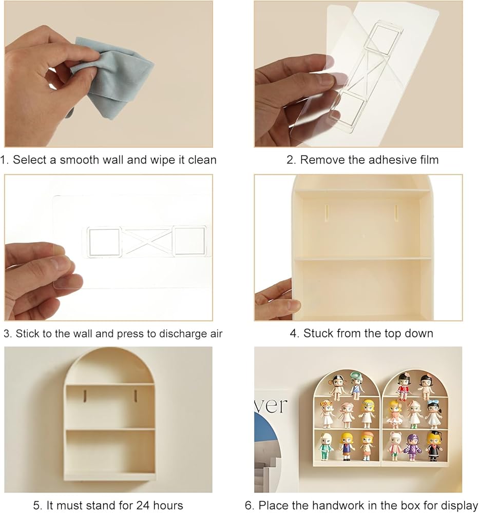 - The blind box storage box is free of nails and drills, making it easy to mount on the wall. It does not harm the wall, and the entire wall is neat and tidy.